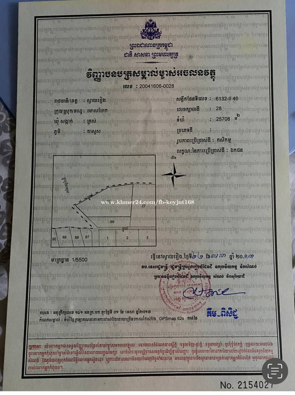 ទំហំ33235 ម៉ែត្រការ៉េ ភូមិតាសួស ឃុំត្រល់ ស្រុករមាសហែក ខេត្តស្វាយរៀង កាត់ទៅ ខេត្តព្រៃវែង ភូមិត្បូងវត្ត ឃុំក្របៅ ខេត្តព្រៃវែង ដី 2 គីឡូម៉ែត្រ ពីច្រកសេដ្ឋកិច្ចពិសេសមុឺនជ័យ វៀតណាមខ្មែរ លក់ក្នងតំលៃ 30 មុឺនដុល្លា ក្រោមហាងឆេង ដីម្ចាស់ផ្ទាល់មានប្លង់រឹងត្រឹមត្រូវ