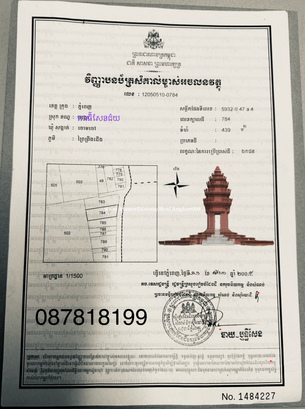 ដីនឹងផ្ទះ ស្ថិតនៅ ភូមិព្រៃព្រឹងជើង១ សង្កាត់ចោមចៅ៣ខណ្ឌពោធ៍សែនជ័យ ក្រុងភ្នំពេញ ជាប្រភេទដី បកលង់រឹង នឹងផ្ទះស្នាក់នៅរាល់ថ្ងៃ ( ដីទទឹង13ម បណ្តោយ35ម នឹងផ្ទះ ទទឹង9ម *13ម ) មានតូបចំនួន2 ចំណូល300$/ខែ ….,, តំបន់ប្រជុំជនខ្លាំង ភូមិសាស្ត្រល្អណាស់ មានអគារធំៗរោងចក្រ ផ្សា បុរី ផ្ទះល្វែង យ៉ាងច្រើកុះករ ងាយស្រួលរស់នៅ ត្រូវការទិញផ្ទាល់ខ្លួន សូមទាក់ទងមកលេខម្ចាស់ដីផ្ទាល់គឺ : ៚ 087818xxxClick To Call / 0718181xxxClick To Call @ សម្រាប់ព័ត៏ទាន់ហេតុការណ៍ : 015646xxxClick To Call