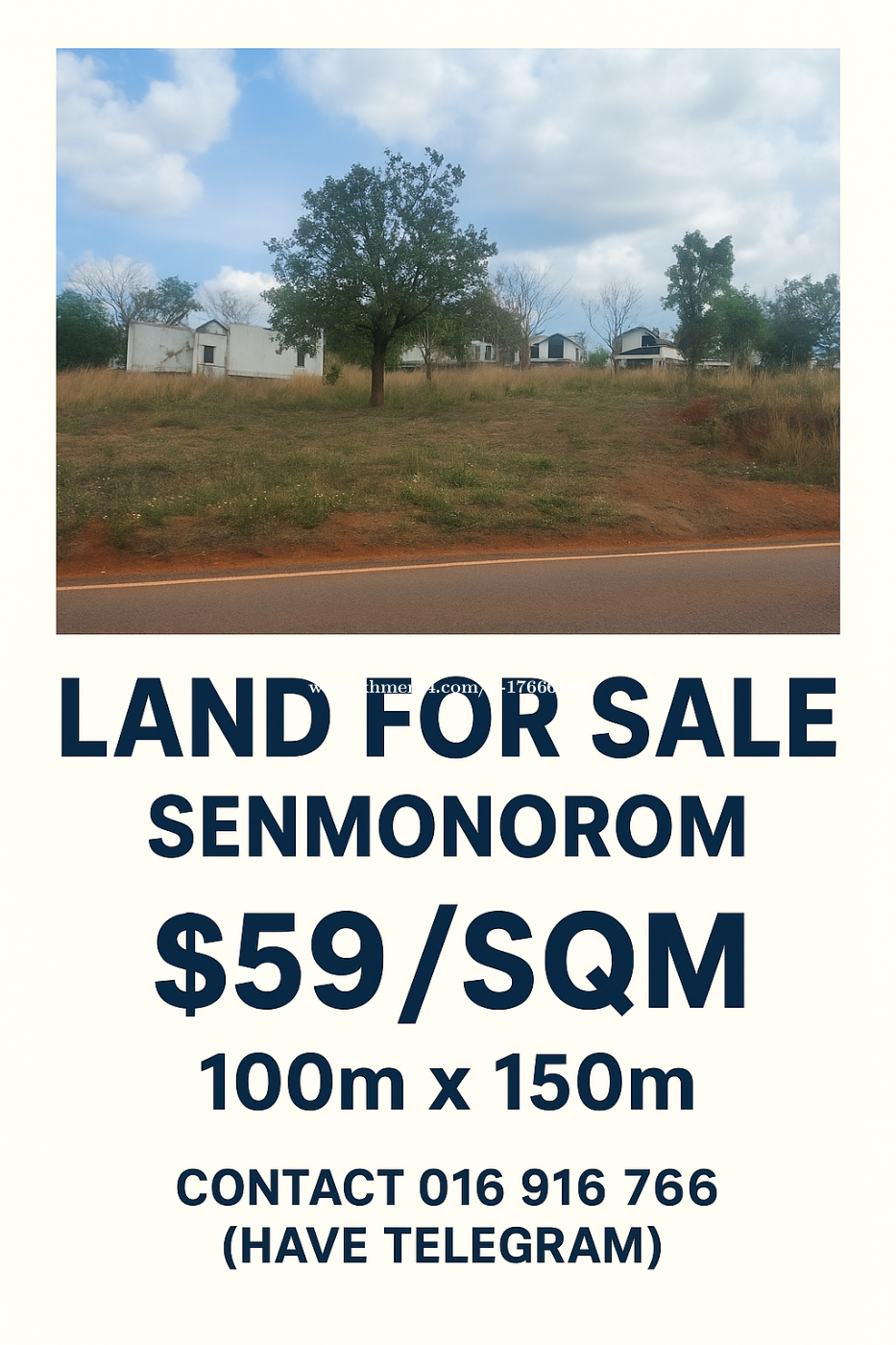 🚨Land Opportunity in Mondulkiri!🚨 Premium land available for lease or partial sale in Sen Monorom city center. 📍 Right on National Road 76, next to Lyly Sunrise Resort 📐 Size: 15,000 sqm (can buy from 5,000 sqm up) with Hard Title 💲 Lease: $0.20/sqm/month | Sale: $59/sqm Perfect for resort, business, or long-term investment. 📞 Contact: +8551691xxxClick To Call6 (Telegram available) Telegram Link : https://t.me/Nimol2025 🚨ឱកាសដីល្អនៅសែនមនោរម្យ!🚨 ដីស្ថិតនៅចំចំណុចកណ្តាលក្រុងសែនមនោរម្យ លើផ្លូវជាតិលេខ ៧៦ ចុងសងខាងជាប់កន្លែងទេសចរណ៍ផ្សេងៗ។ 📍 ទំហំដី: 15,000 ម៉ែត្រការ៉េ (អាចចាប់ផ្តើមទិញពី 5,000 ម៉ែត្រការ៉េ) ប្លង់រឹងប្រព័ន្ធ L-MAP 💲 តម្លៃជួល: $0.20/ម៉ែត្រការ៉េ/ខែ 💲 តម្លៃលក់: $59/ម៉ែត្រការ៉េ សាកសមសម្រាប់សណ្ឋាគារ រេស្តូរ ឬវិនិយោគអនាគត។ 📞 ទំនាក់ទំនង: +8551691xxxClick To Call6 (មាន Telegram) តេលេក្រាមលីង ៖ https://t.me/Nimol2025