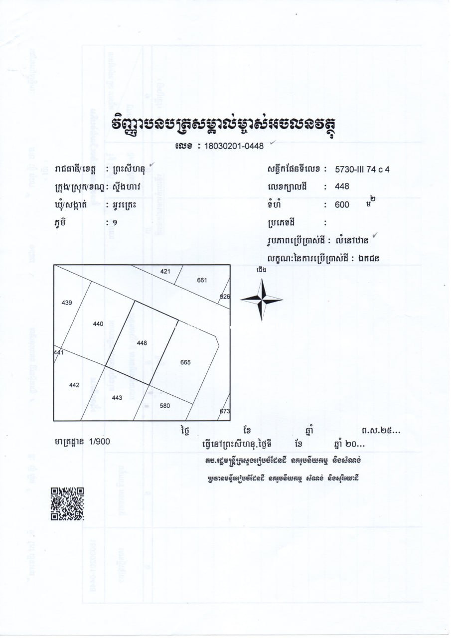 នេះជាដីដែលជាផ្នែកមួយនៃ 100 ឡូតិ៍ និង 2 ឡូតិ៍ 600 m2 នីមួយៗ។ តម្លៃគឺសម្រាប់ទាំងពីរឡូតិ៍។ វាស័ក្តិសមសម្រាប់ការសាងសង់កន្លែងស្នាក់នៅសម្រាប់កម្មករនៃកំពង់ផែអន្តរជាតិស្ទឹងហាវ-តំបន់សេដ្ឋកិច្ចពិសេស។ ផ្លូវធំងាយស្រួលចូល។ ខលមកចរចារតម្លៃបាន យើងប្រញាប់លក់។ This is land is part of 100 lot and comprises 2 lots of 600 m2 each. The price is for both lots. It is suitable for building accommodation for worker of nearby international port Stung Hav - Special Economic Zone. Easy access to main road Call and negotiate price, we are in a hurry to sell.