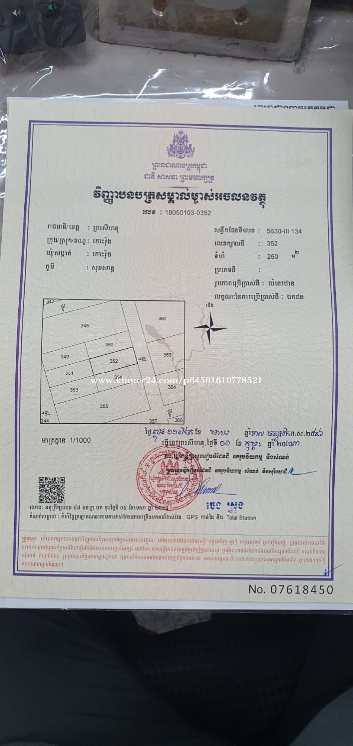 Preah Sihanouk , ដីប្លង់រឹងនៅកោះរ៉ុង ទំហំ 10X26 លក់ត្រឹមតែ 150$/m2 អាចសង់ផ្ទះរឺបន្ទប់ជួលបាន,ដីមានសក្តានុពល នៅជិត SOK SAN Resort.