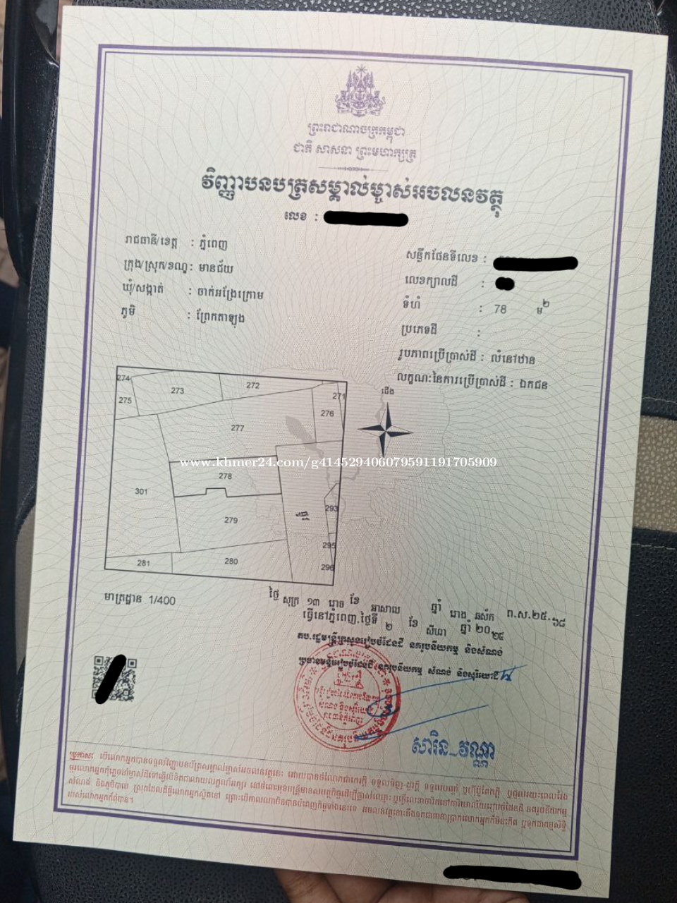 🏠 ប្រកាសលក់ដីផ្ទះ តម្លៃក្រោមទីផ្សារ – លក់បន្ទាន់ខ្លាំង 📍 ទីតាំង៖ សង្កាត់ចាក់អង្រែក្រោម ខណ្ឌមានជ័យ រាជធានីភ្នំពេញ 📐 ទំហំដី៖ 78 ម៉ែត្រការ៉េ (ទំហំបន្ទាប់ពីរដ្ឋបានកាត់យកចំណីផ្លូវរួច) 🚧 ផ្លូវមុខដី៖ ផ្លូវលំទំហំ 4.5ម៉ែត្រ 💲 តម្លៃលក់៖ $68,000 ចរចា ប្លង់រឹង(កាត់ឈ្មោះជូន) 📌 លក់ក្រោមតម្លៃទីផ្សារ – 🏡 ប្រភេទដីផ្ទះ៖ អាចកែសំណង់បានប្រកបដោយគ្រួសារផ្ទាល់ខ្លួន ឬផ្ទះជួល 👉 កែបានជាផ្ទះមាន 3 បន្ទប់គេង | 2 បន្ទប់ទឹក | ផ្ទះបាយ 1 🧱 មានរបងព័ទ្ធជុំវិញ សុវត្ថិភាពល្អ 💧ក្នុងតំបន់មានហេដ្ឋារចនាសម្ព័ន្ធល្អ មិនលេចទឹក 🏫 ជិត AEON Mall 3, សាលាសុវណ្ណភូមិ, បុរីប៉េងហួត60m, មន្ទីរពេទ្យ , សាលារដ្ឋជាឯកជន ✅ផ្ទះបែទៅកើត ✅ខាងកើតជាប់ផ្លូវជាតិលេខ២ខាងលិចផ្លូវ60m 📶 មានបណ្តាញអគ្គិសនី ទឹកប្រើ បណ្តាញអ៊ីនធឺណិត 🌇 តំបន់អភិវឌ្ឍន៍លឿន អ្នកទិញទុកវិនិយោគ ឬសាងសង់សម្រាប់នៅផ្ទាល់ តម្លៃបច្ចុប្បន្នក្នុងតំបន់$1,400+/ម៉ែត្រការ៉េ 👉 ហ៊ាននិយាយថា អ្នកទិញថ្ងៃនេះ ចំណេញថ្ងៃស្អែក! ✅ទិញសម្រាប់នៅ សម្រាប់លក់ក្នុងពេលអនាគត ទិញសម្រាប់ជួល គឺបានទាំងអស់ (មានមនុស្សរស់នៅច្រើន) 📞 អាចមកមើលផ្ទាល់ ឬសួរព័ត៌មានបន្ថែមតាម៖ 📲 Telegram/Call: 0969604xxxClick To Call 🔗 Telegram ID:0969604xxxClick To Call