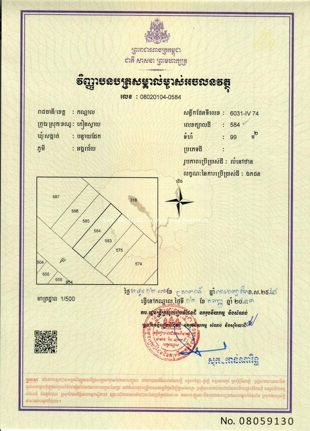 ដីលំនៅដ្ឋាន ដីភូម មានអ្នកភូមិជិតខាងរស់នៅច្រើន ទីតាំង ខេត្តកណ្តាល ស្រុកកៀនស្វាយ ឃុំបន្ទាយដែក ភូមិ អង្គរជ័យ ** កាត់ប្លង់រឹងជូន **