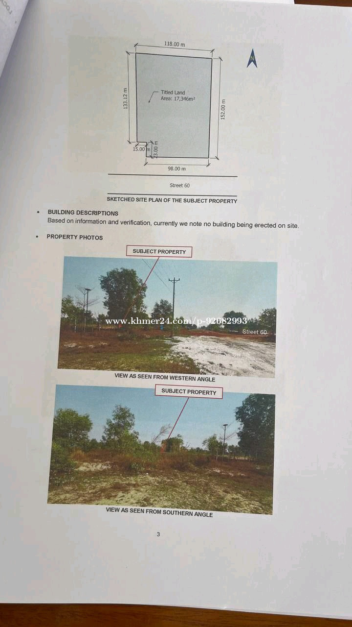 សួស្តីបងប្អូនខ្ញុំបាទមានដីលក់មួយកន្លែង ស្ថិតនៅជាប់ផ្លូវ 60ម៉ែត្រ ទំហំ 17346m2 ទីតាំងល្អអាចបើកអាជីបកម្ម ឬដីឡូបាន តម្លៃ 255$/m2 បើបងប្អូនមានចំណាប់អារម្មណ៍ទាក់ទងមកបាន 0719967xxxClick To Call/016766xxxClick To Call
