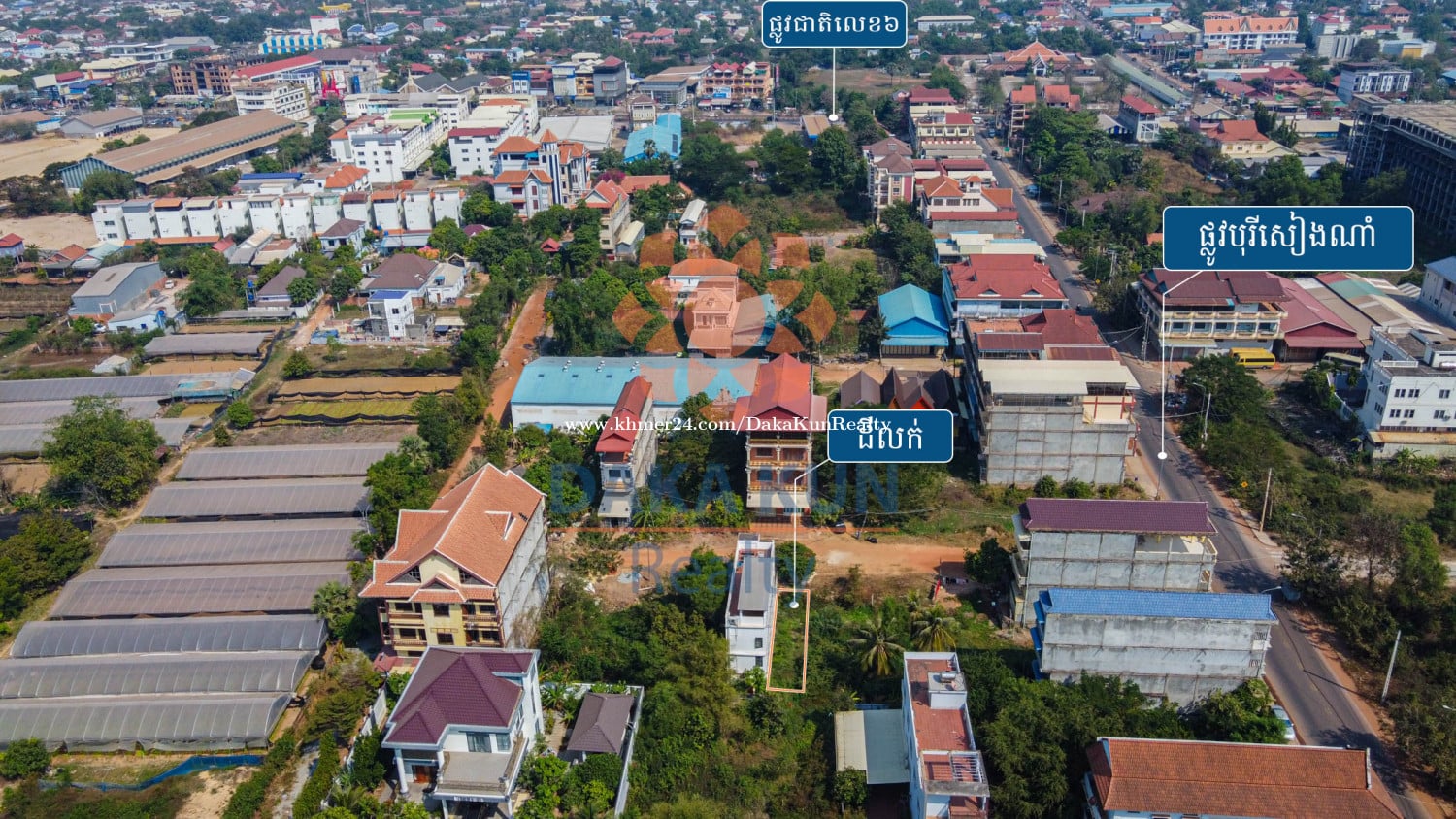 ***English Below*** ទំនាក់ទំនងមក Daka Kun Realty តាមរយៈលេខទូរស័ព្ទ 089899xxxClick To Call / 012390xxxClick To Call ( WhatsApp/Telegram ) ឬផ្ញើសារមកកាន់អ៉ីមែល ៖ inq****@dakakunrealty.comClick To Sent Email លេខកូត៖ DL1246 តម្លៃ៖ 25,000 ដុល្លារ (ចរចា) • ទំហំដី៖ 4.2ម x 20ម (84 ម៉ែត្រការេ) • ប្រភេទប្លង់រឹង • ទីតាំង៖ ស្ថិតនៅជាប់ផ្លូវ8ម ក្នុងសង្កាត់ស្លក្រាម, ក្រុងសៀមរាប —------------------------------------------------------------------------ Contact Daka Kun Realty at 089899xxxClick To Call/012390xxxClick To Call ( WhatsApp & Telegram) or Email: inq****@dakakunrealty.comClick To Sent Email Property ID: DL1246 Price: USD 25,000 (Negotiable) • Land Size: 4.2m x 20m (84 sqm) • Hard Title • Located on an 8m, in Sangkat Sla Kram, Siem Reap City More option: www.dakakunrealty.com Telegram Channel —-> https://t.me/dakakunrealty ភ្នាក់ងារអចលនវត្ថុ: យឺន សំអាត អត្តលេខ: R-21-381-01