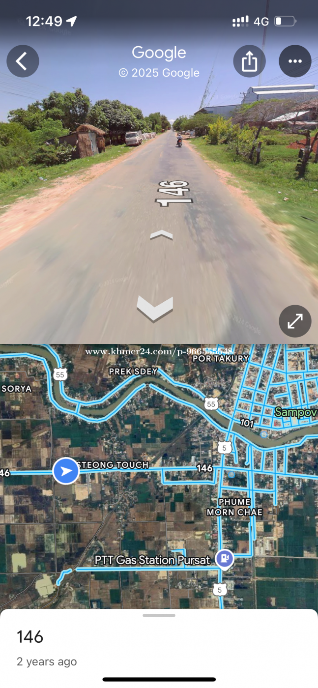 ដីលើផ្លូវធំ លេខ១៤៦ ក្បែរបុរី ទីប្រជុំជន ប្រកបអាជីវកម្មផ្សេងៗបាន ចុះពីផ្លូវជាតិលេខ៥ ប្រហែល ១៥០០ម ទំហំដី ៤៦ម x ៦០ម (ប្លង់រឹង) ប្រភេទដីលំនៅដ្ធាន តំល្លៃលក់ក្រោមទីផ្សារ 1មែត្រដើរ 3000$ ចរចា