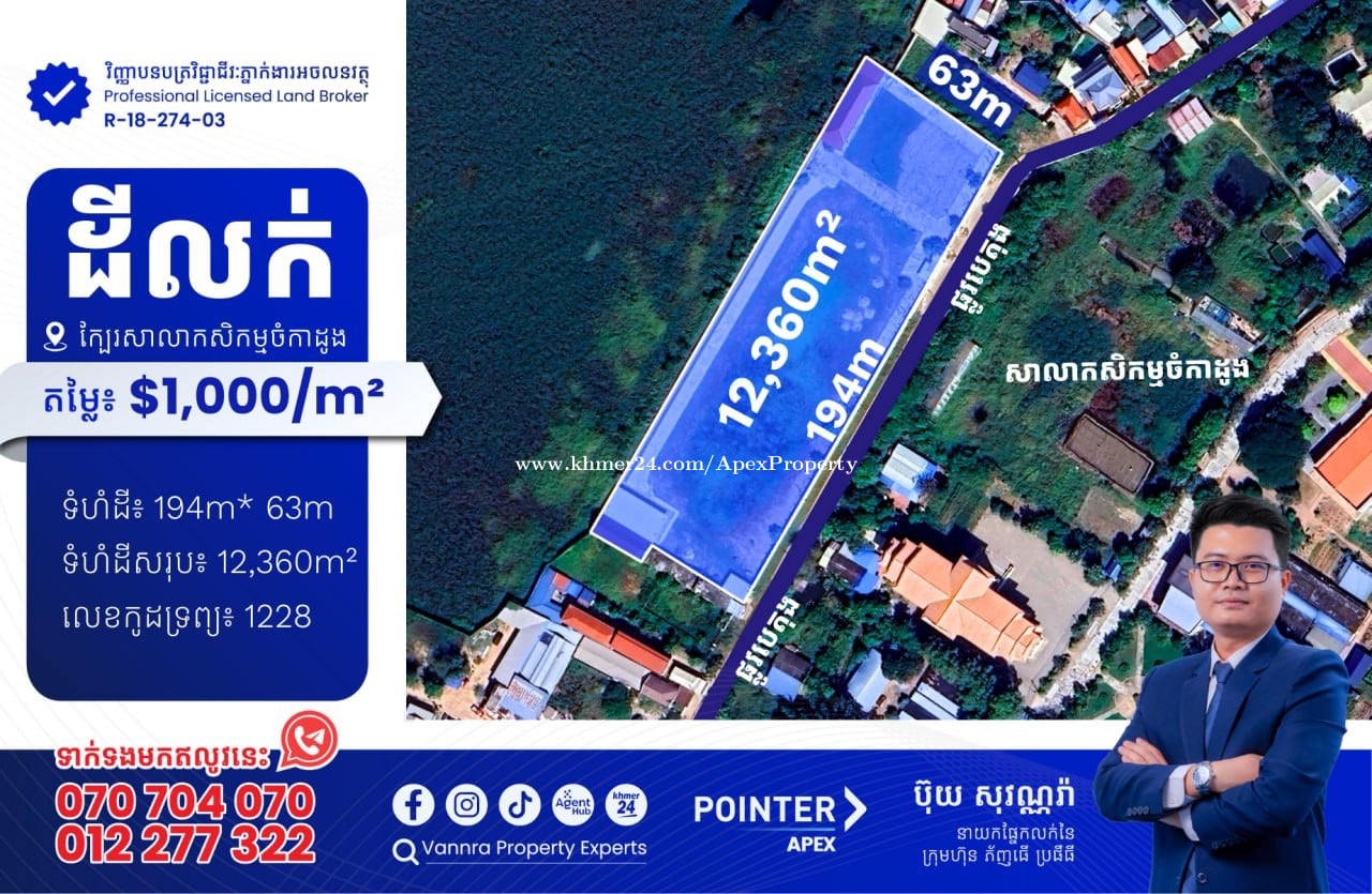 ដីលក់នៅក្បែរសាលាកសិកម្មចំការដូង សម្រាប់លក់:1000/m² ឬ $ 12,360,000 ទំហំដី : 194m x 63m ទំហំដីសរុបៈ 12,360m² 🔐លេខកូដអចលនវត្ថុ៖ 1228 ស្ថិតនៅលើផ្លូវបេតុងក្បែរសាលាកសិកម្មចំការដូង សង្កាត់ដង្កោ ខណ្ឌដង្កោ ភ្នំពេញ ——————————— ទាក់ទងមកឥលូវនេះ៖ Call: 070704xxxClick To Call / 012277xxxClick To Call Telegram: https://t.me/vannraaa 微信号: vannra-experts - Channel: https://t.me/vannrapropertyexperts - Tiktok: https://www.tiktok.com/@vannra_property_experts - Facebook: https://www.facebook.com/vannra.phnompenh.property/