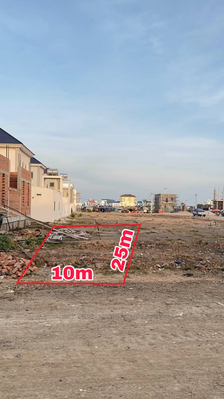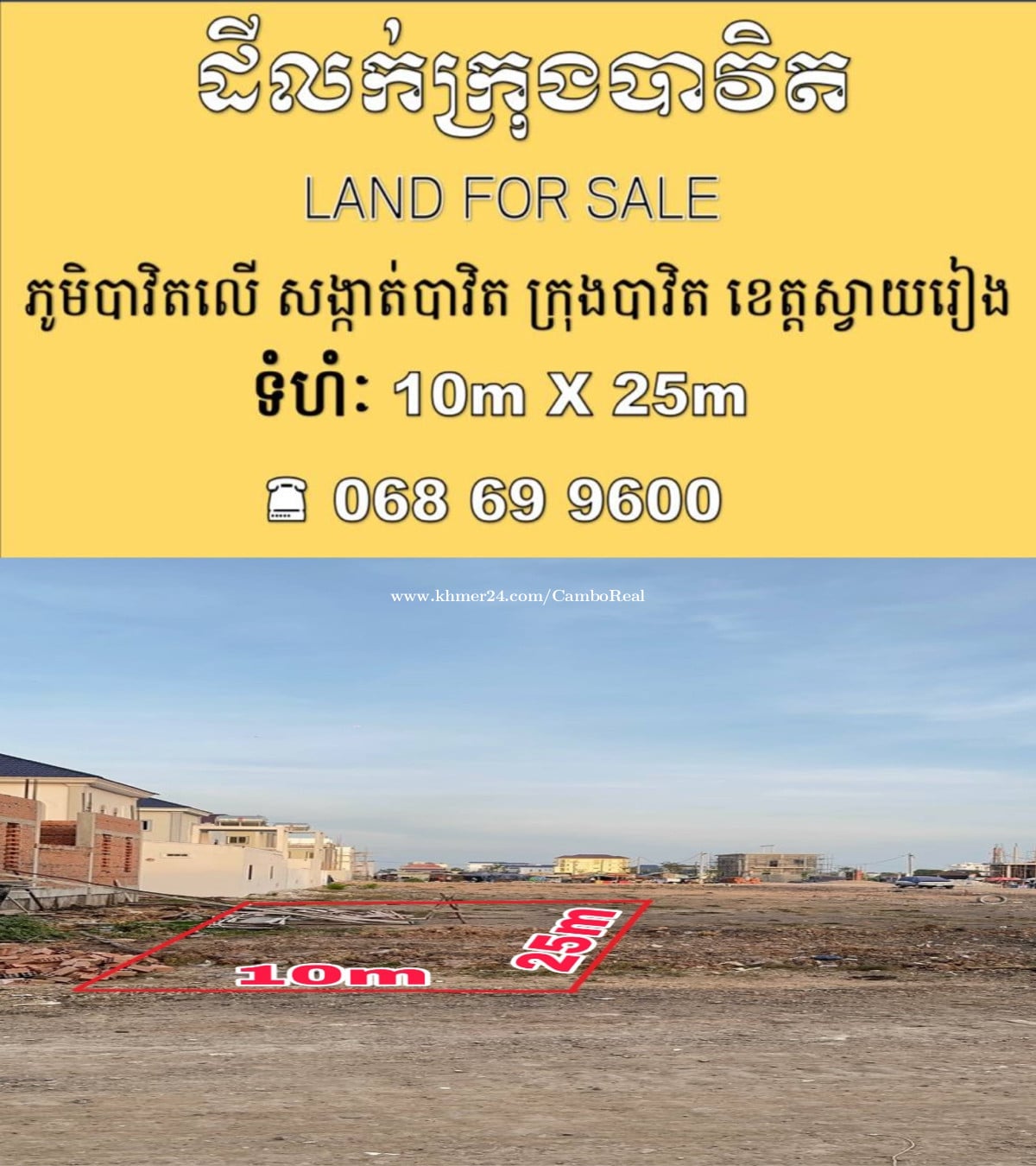 ដីលក់ក្រុងបាវិត នៅម្តុំផ្ទះវិឡាជួលអោយចិនជុំវិញ នៅលើផ្លូវរដ្ឋ ទឹកភ្លើងប្រព័ន្ធលូប្លង់រឹង 10m X 25m 250m2 56000$ 012454xxxClick To Call