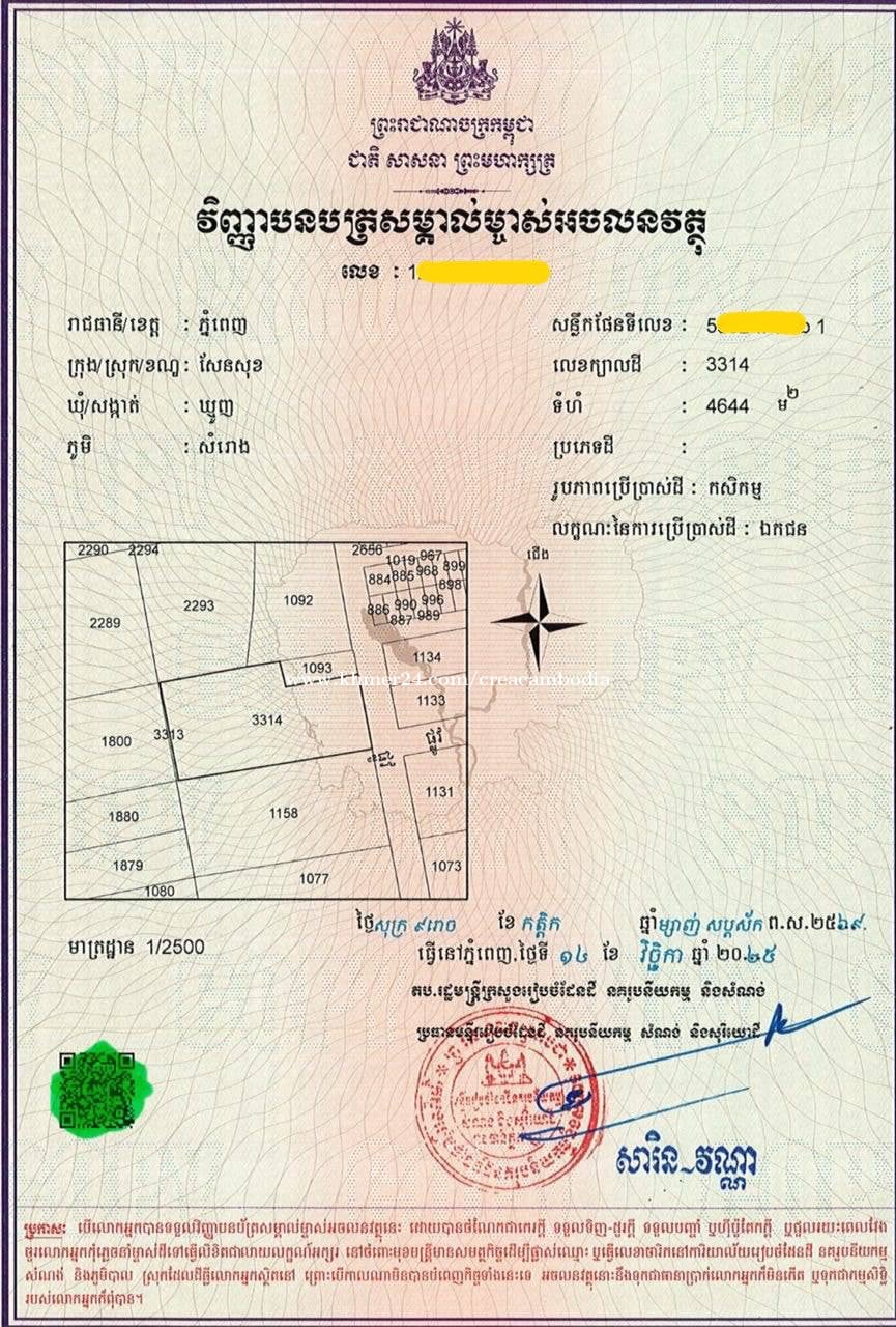 ដីលក់ឃ្មួញ សែនសុខ ភ្នំពេញ តម្លៃ : $320 ទំហំ : 4644 ម៉ែត្រការេ ប្លង់រឹង ☎️ 070418xxxClick To Call | 078418xxxClick To Call Telegram : https://t.me/Sienghai 1. SIENGHAI Channel : https://t.me/sienghaioucrea 2. HOUSE SALE : https://t.me/creasale 3. HOUSE RENT : https://t.me/crearent 4. Condo & Apartment : https://t.me/creaozone 5. Commercial Bulding : https://t.me/creabizzone 6. LAND : https://t.me/CREAAILAND