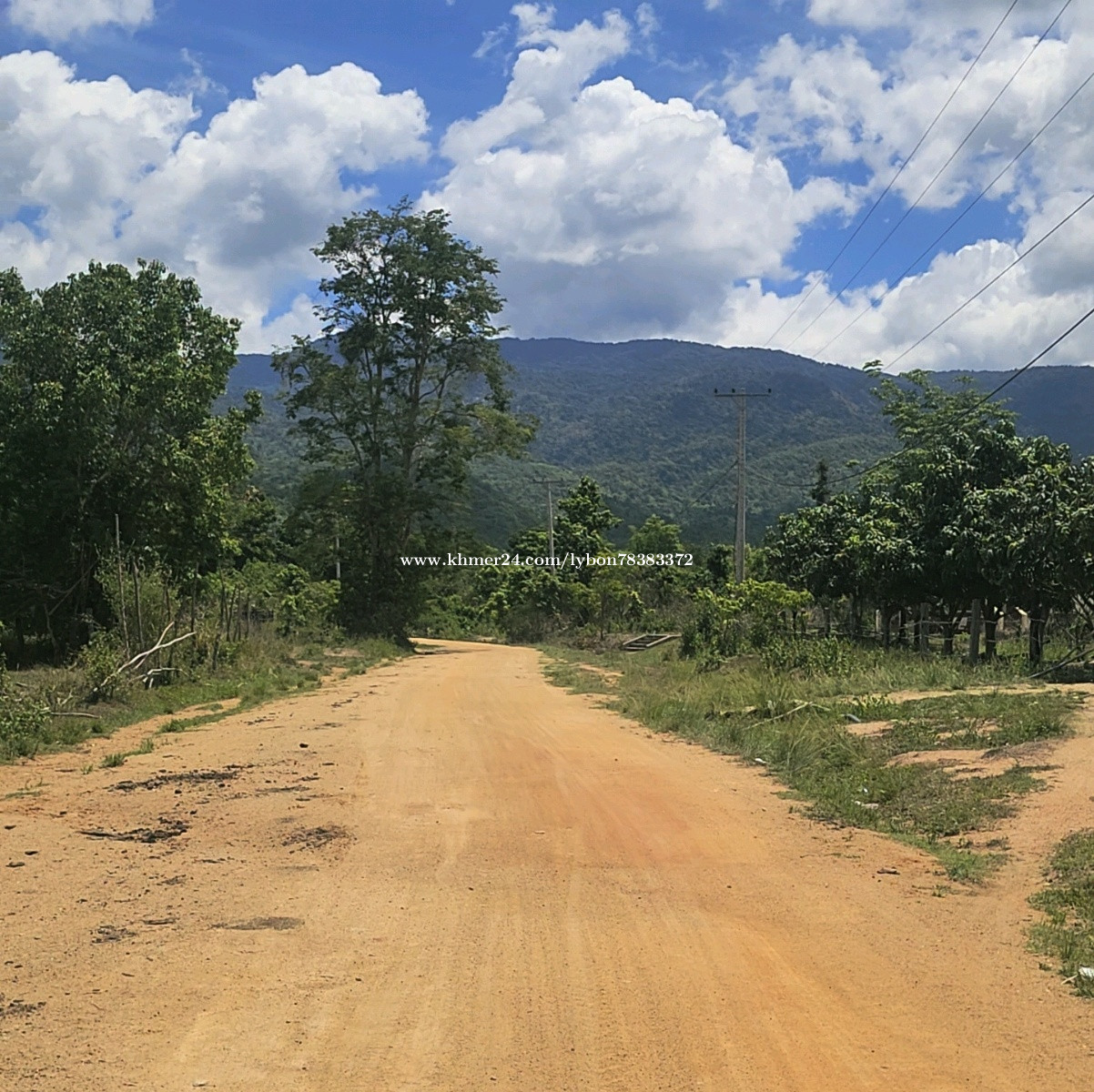 ទីតាំល្អនៅជាប់ផ្លូវទៅទឹកធ្លាក់ថ្មក្រាល ផ្លូវកុំពុងឈូសឆាយចាក់កៅស៊ូ ក្បាលដី30ម×120ម ស្មើជ្រុងស្អាត ជិតជើងភ្នំទេសភាពស្អាតអមដោយភ្នំព័ទ្ធជុំវិញដី