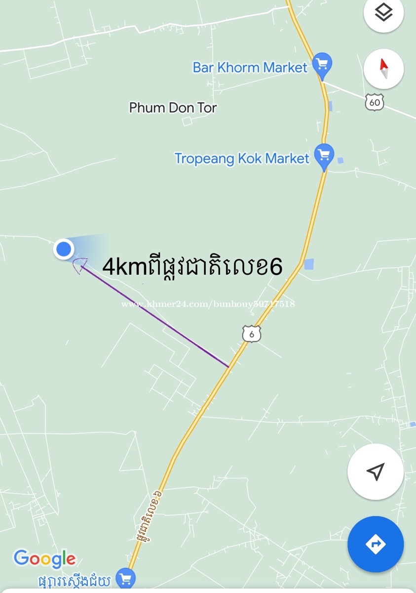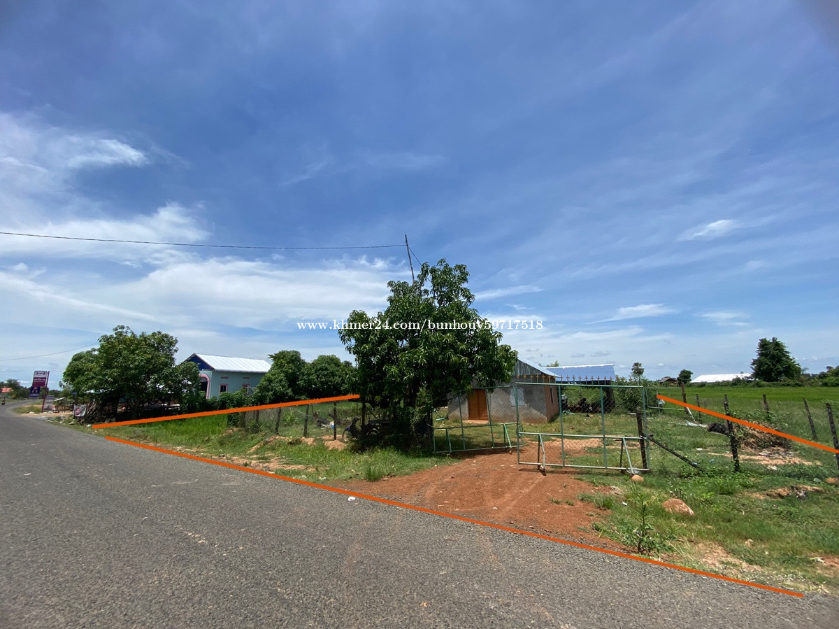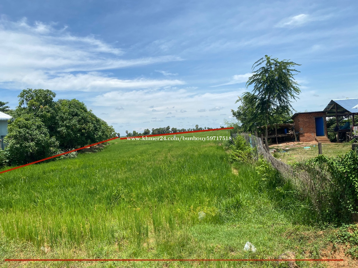 ទំហំ៣ហិតាជាប់ថ្នល់កៅស៊ូ. 56m*480mជាប់ផ្លូវ កៅស៊ូមានប្រព័ន្ធទឹកភ្លើង ជិតសាលាវិទ្យាល័យ ជាប់ផ្លូវជាតិលេខ6 ចម្ងាយ4គីឡូម៉ែត្រ ភូមិ តានីឃុំព្រីងជ្រុំស្រុកជើងព្រៃខេត្តកំពង់ចាម ប្លង់រឹង