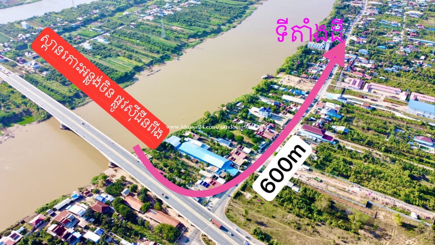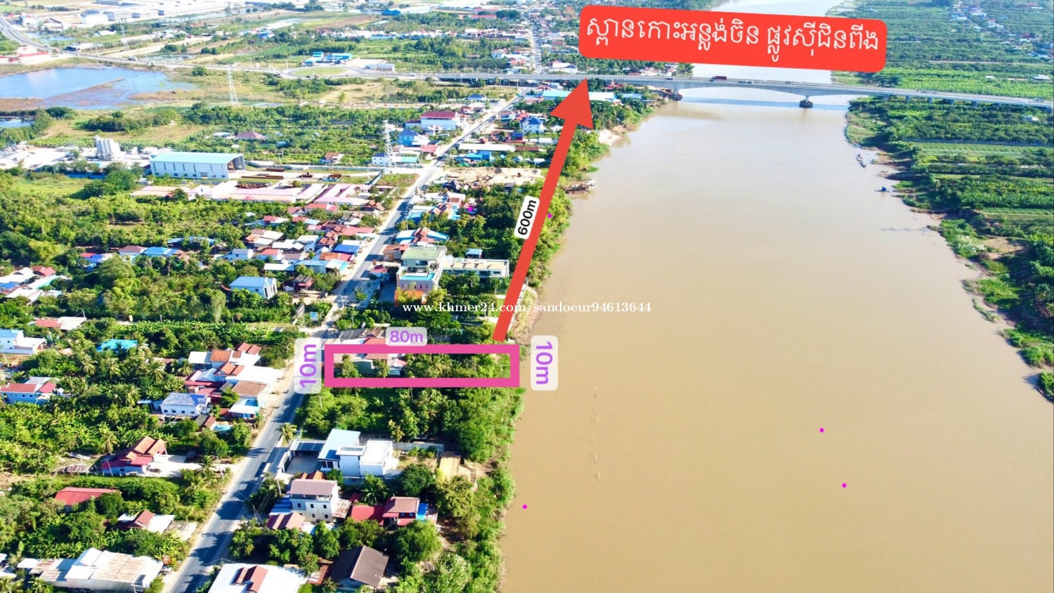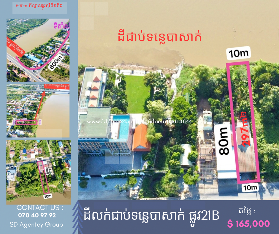 ដីលក់ជាប់ទន្លេបាសាក់ ផ្លូវ21B ចម្ងាយ600mពីស្ពាន ផ្លូវស៊ីជីនពីង