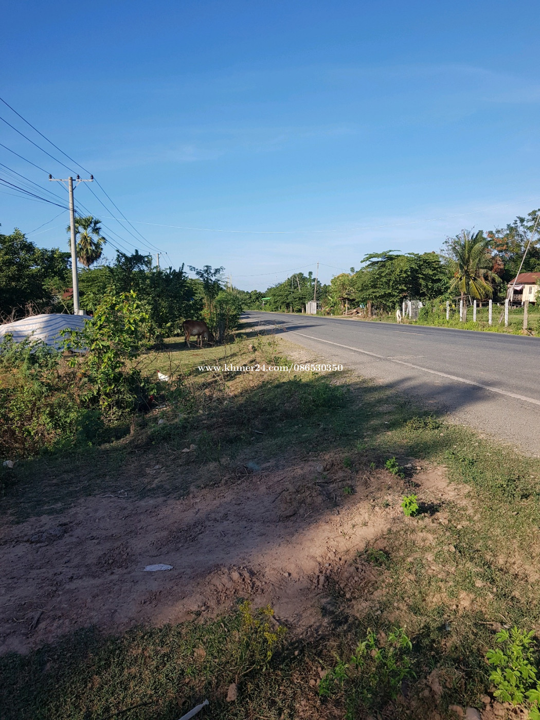 ដីជាប់ផ្លូវកៅស៊ូ អាចរកស៊ីបាន នៅឃុំស្វាយភ្លោះ ស្រុកពាមជរ ខេត្តព្រៃវែង ក្បាល10ម៉ែត្រ បណ្ដោយ50ម៉ែត្រ ចុះពីរ ង្វង់មូលអ្នកលឿង 12គីឡូម៉ែត្រ នៅជិតសាលាឃុំស្វាយភ្លោះ ដីមានដើមទឹកដោះគោ 3ដើម ស្វាយ1ដើម ដើមត្នោតមួយដើម 19500$ អាចចរចាបាន