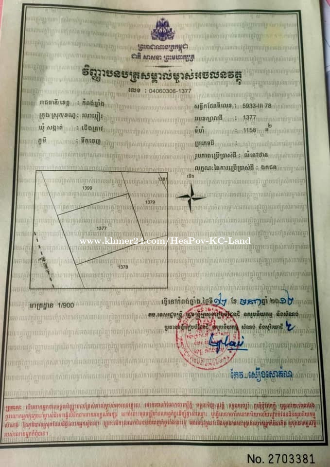 📣 #ដីលក់ជាប់ផ្លូវកៅស៊ូរដ្ឋ30ម 👉 ទំហំ1158 ម²(25*46ម)💰តំលៃ13800$ #ប្លង់រឹង 🏫 50មពីសាលារៀន ជិតប៉ុស្តិ៍នគរបាល មណ្ឌលសុខភាព និងផ្សារ។ 🚘 ចំងាយ6គមពីផ្លូវជាតិលេខ5 និង85គមពីភ្នំពេញ។ ⛳️ ទីតាំង: ឃុំជើងគ្រាវ ស្រុករលាប្អៀរ ខេត្តកំពង់ឆ្នាំង។ ☎️098652xxxClick To Call,092202xxxClick To Call,0883433xxxClick To Call 🤝🙏តេលេក្រាម 098652xxxClick To Call
