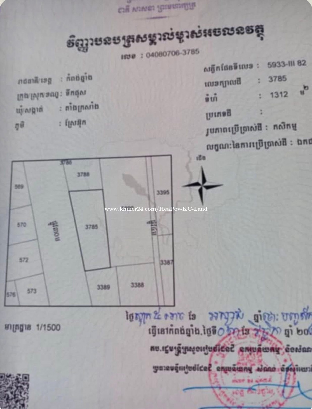 🔔 #ដីលក់ជាប់ផ្លូវកំពុងចាក់កៅស៊ូ(ផ្លូវរដ្ឋ30ម) ✅ ទំហំ1312 ម²(60*22ម)💰តំលៃ6300$ #កាត់ប្លង់រឹងជូន ✅ ដីភូមិ ជិតសាលារៀន ដីឡូតិ៍ សហគ្រាស កសិដ្ឋាន និងរមនីយដ្ឋាន។ 🚘 ចំងាយ11គមពីផ្លូវជាតិលេខ5 និង80គមពីភ្នំពេញ។ ⛳️ ទីតាំង: ឃុំតាំងក្រសាំង ស្រុកទឹកផុស ខេត្តកំពង់ឆ្នាំង។ ☎️098652xxxClick To Call,092202xxxClick To Call,0883433xxxClick To Call 🇰🇭តេលេក្រាម 098652xxxClick To Call