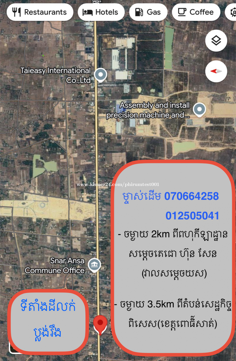 Location: ជាប់ផ្លូវជាតិលេខ៥ ភូមិស្វាយស ឃុំស្នាអន្សា ស្រុកក្រគរ ខេត្តពោធិ៍សាត់ Sna Ansa, Krakor, Pursat
