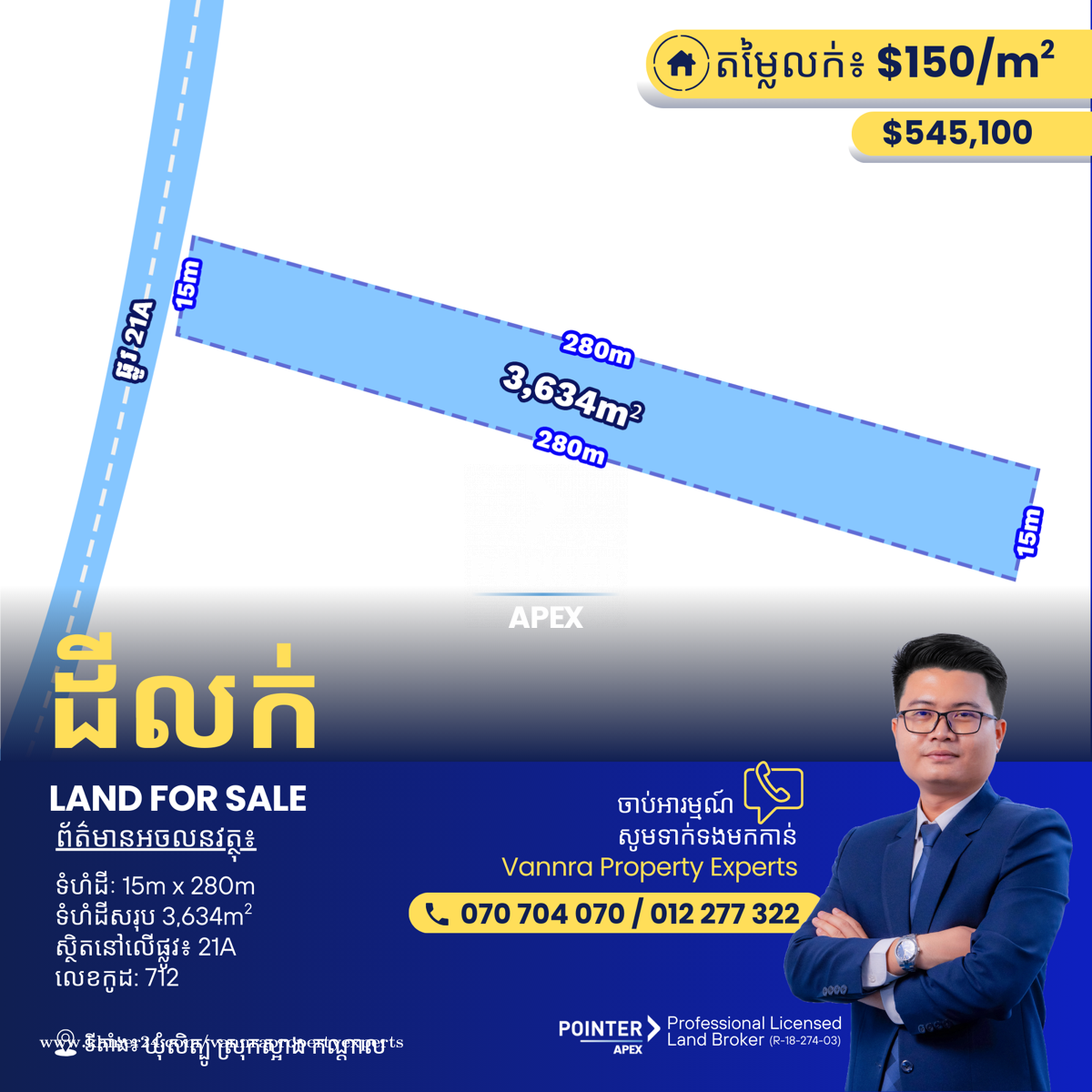 ដីសម្រាប់លក់ជាប់មាត់ទន្លេ សម្រាប់លក់:$545,100 ទំហំដី: 15m x 280m (3634m2) 🔐លេខកូដអចលនវត្ថុ៖ 712 📌 លើផ្លូវជាតិលេខ 21A សិត្បូ ស្រុកស្អាង ខេត្តកណ្តាល ——————————— ទាក់ទងមកឥលូវនេះ៖ Call: 070704xxxClick To Call / 012277xxxClick To Call Telegram: https://t.me/vannraaa 微信号: vannra-experts - Channel: https://t.me/vannrapropertyexperts - Tiktok: https://www.tiktok.com/@vannra_property_experts - Facebook: https://www.facebook.com/vannra.phnompenh.property/