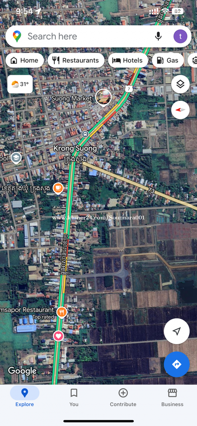ដីលើផ្លូវជាតិលេខ7 ជិតផ្សារសួង 18,000$/ម៉ែតដើរ