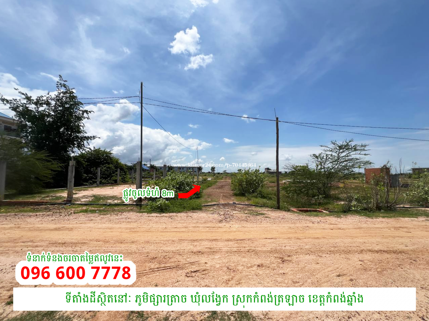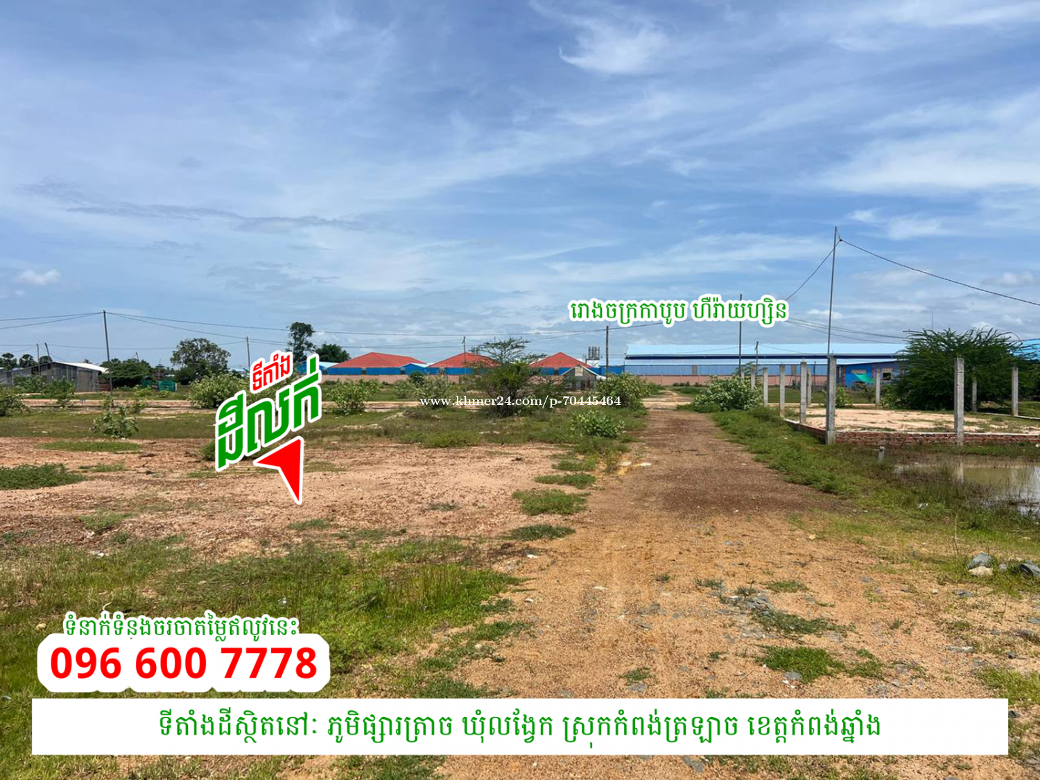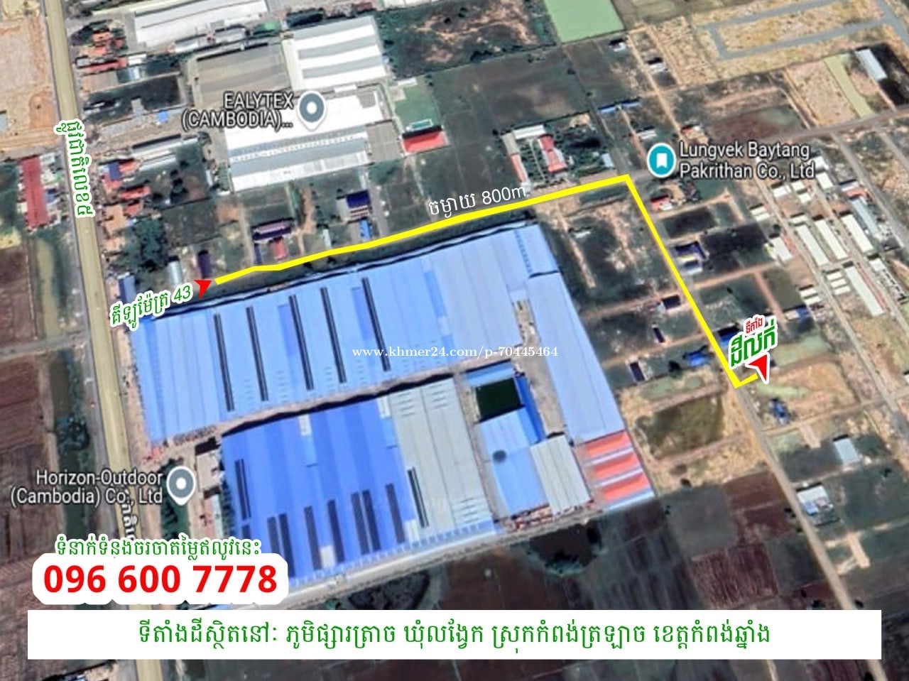 ដីលក់បន្ទាន់ ទំហំ 15m x 20m ទីតាំងនៅក្រោយរោងចក្រ ក្បែរផ្សារ សាលារៀន មណ្ឌលសុខភាព ល្អសម្រាប់ការរស់នៅ ឬ ធ្វេីបន្ទប់ជួលបាន មានទឹក ភ្លេីង និងសេវាអនាម័យ ចម្ងាយត្រឹមតែ43Km ពីរាជធានីភ្នំពេញ
