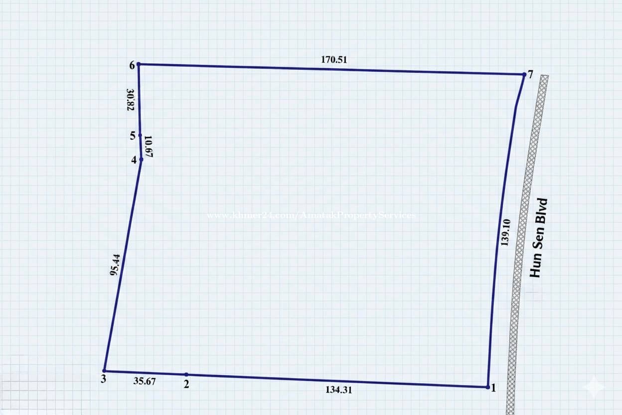 ដីលក់ តាមបណ្តោយផ្លូវសម្តេចហ៊ុនសែន Total land size : 2 hectares price: 1,450$/m2 ចរចា 📞សំរាប់ពត៌មានបន្ថែមៈ 012597xxxClick To Call/ 069618xxxClick To Call Telegram Link: https://t.me/Limnarith779