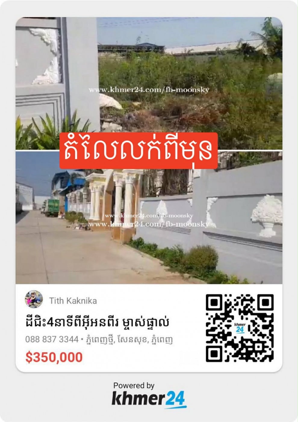 Contact Info: Please don't forget to mention that you found this ad on khmer24.com.