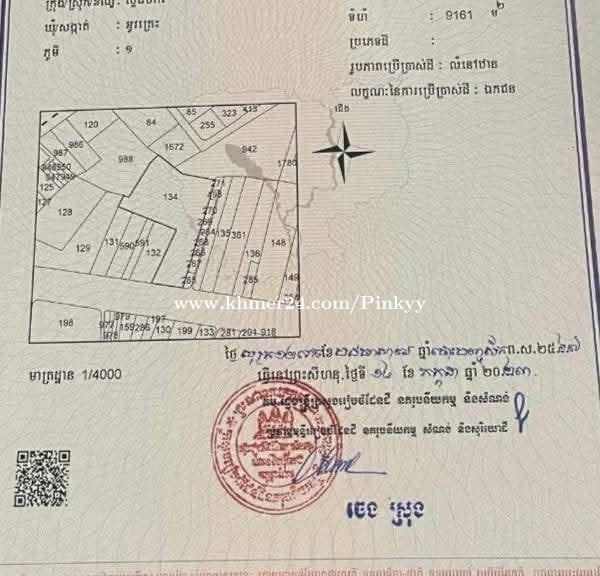 👉ដីលក់ជាប់ផ្លូវ សម្ដេច ទេពវង្ស ជិតរង្វង់មូល ក្រោយសាលាស្រុក ស្ទឹងហាវ *ក្បាលជាប់ផ្លូវ45m x100m *រាងអក្សរអិល *ទំហំ9161ម៉ែត្រការ៉េsqm *ប្លង់រឹងកាត់ប្លង់បង់ពន្ធជូនអ្នកទិញ *តម្លៃលក់$55ចចារ 1 ម៉ែត្រការ៉េ 📍ទីតាំង :ភូមិ១ឃុំ អូត្រេះ ស្រុកស្ទឹងហាវ ខេត្តព្រះសីហនុ