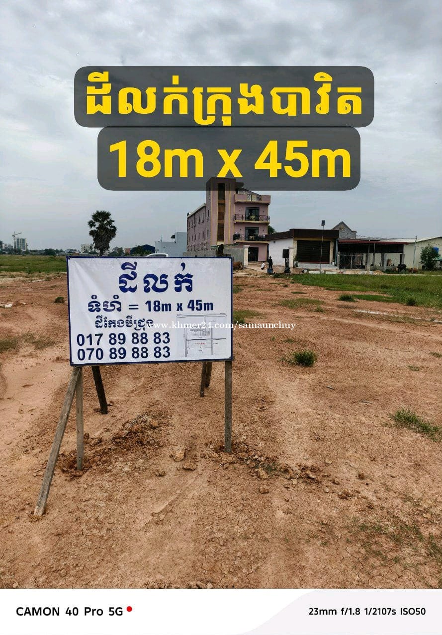 ដីកែង៣ជ្រុង ទទឹង18m x 45m នៅក្បែរផ្សារអន្តរជាតិបាវិត