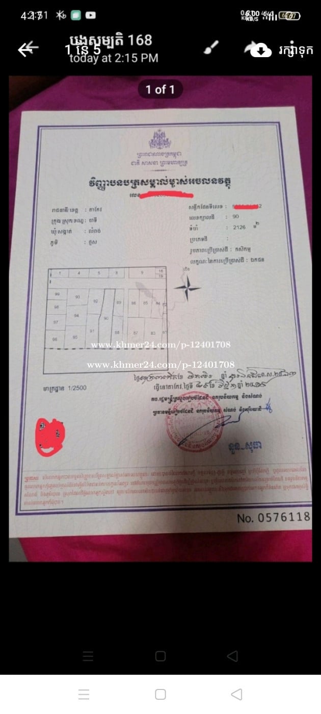ដីលក់នៅជិតភ្នំតាម៉ៅ 19ម×100មលក់25000$ចុះបានខ្លះទៀត ដីចុះពីផ្លូវកៅស៊ូចម្ងាយមួយគីឡូ ដីជាប់នឹងផ្លូវរដ្ឋ 15 ម៉ែត្រ ផ្លូវបេតុងចាក់ជិតដល់ដីនៅចម្ងាយ 50 ម៉ែត្រពីផ្លូវបេតុង ដីមានទឹកស្អាតភ្លើងរដ្ឋប្រើ ដីលក់ក្រោមទីផ្សារ ម្ចាស់ត្រូវការលុយបន្ទាន់ខ្លាំង បងប្អូនមានចំណាប់អារម្មណ៍អាចទាក់ទងបាន 012401xxxClick To Callតេឡេក្រាម 070401xxxClick To Call