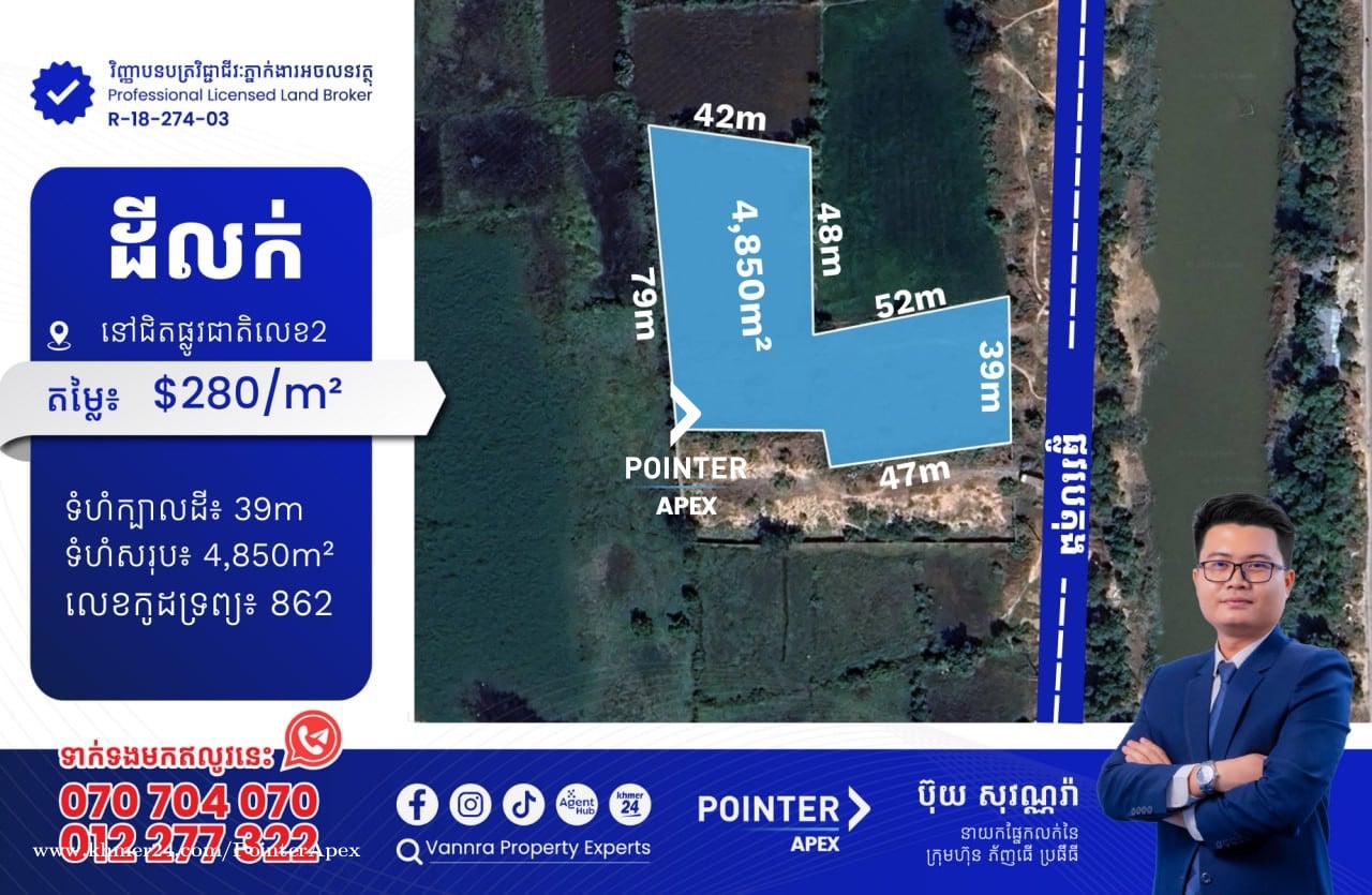ដីលក់នៅជិតផ្លូវជាតិលេខ2 ក្បែរបុរីចន្ទ័គីរី សម្រាប់លក់: $280/m² ឬ $1,358,000 ទំហំក្បាលដី:39m ទំហំដីសរុប:4,850m² 🔐លេខកូដអចលនវត្ថុ៖ 862 ស្ថិតនៅជិតផ្លូវជាតិលេខ2 ក្បែរបុរី ចន្ទ័គីរី សង្កាត់ព្រែកកំពឹស ខណ្ឌដង្កោ ភ្នំពេញ ——————————— ទាក់ទងមកឥលូវនេះ៖ Call: 070704xxxClick To Call / 012277xxxClick To Call Telegram: https://t.me/vannraaa 微信号: vannra-experts - Channel: https://t.me/vannrapropertyexperts - Tiktok: https://www.tiktok.com/@vannra_property_experts - Facebook: https://www.facebook.com/vannra.phnompenh.property/