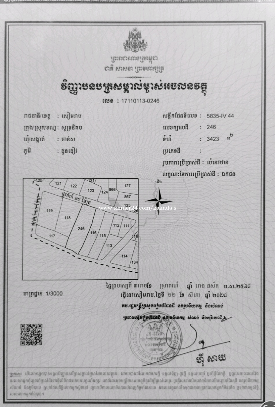 ដីស្អាតមានមនុស្សរស់នៅច្រើន ទីក្រុងថ្មី មាន ផ្លវ មុខ និង ផ្លូវខាងក្រោយ 15m ក្បាលដីខាងមុខជាប់ផ្លូវបេតុង តំលៃ $ 35/m2 ទីតាំងល្អ ចុះ ពីផ្លូវប្រលានថ្មីប្រហែល 900m ដីមាន ប្ងង់រឹង ម្ចាស់ដើម តំលៃ ចរចារបានខ្លះ Tel: 087222xxxClick To Call/012776xxxClick To Call/0982010xxxClick To Call