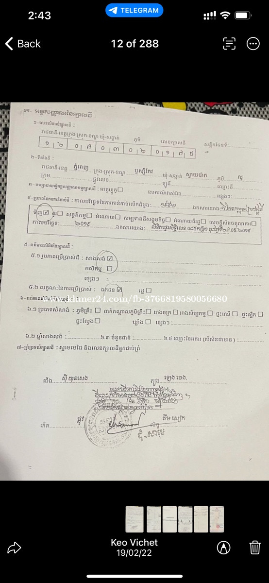 ទំហំ445 ម៉ែត្រការ៉េលក់ក្មុងតំលៃ350000$ចរចារបាននៅជិតបុរីអង្គរថ្មី (ប្លង់រឹង)