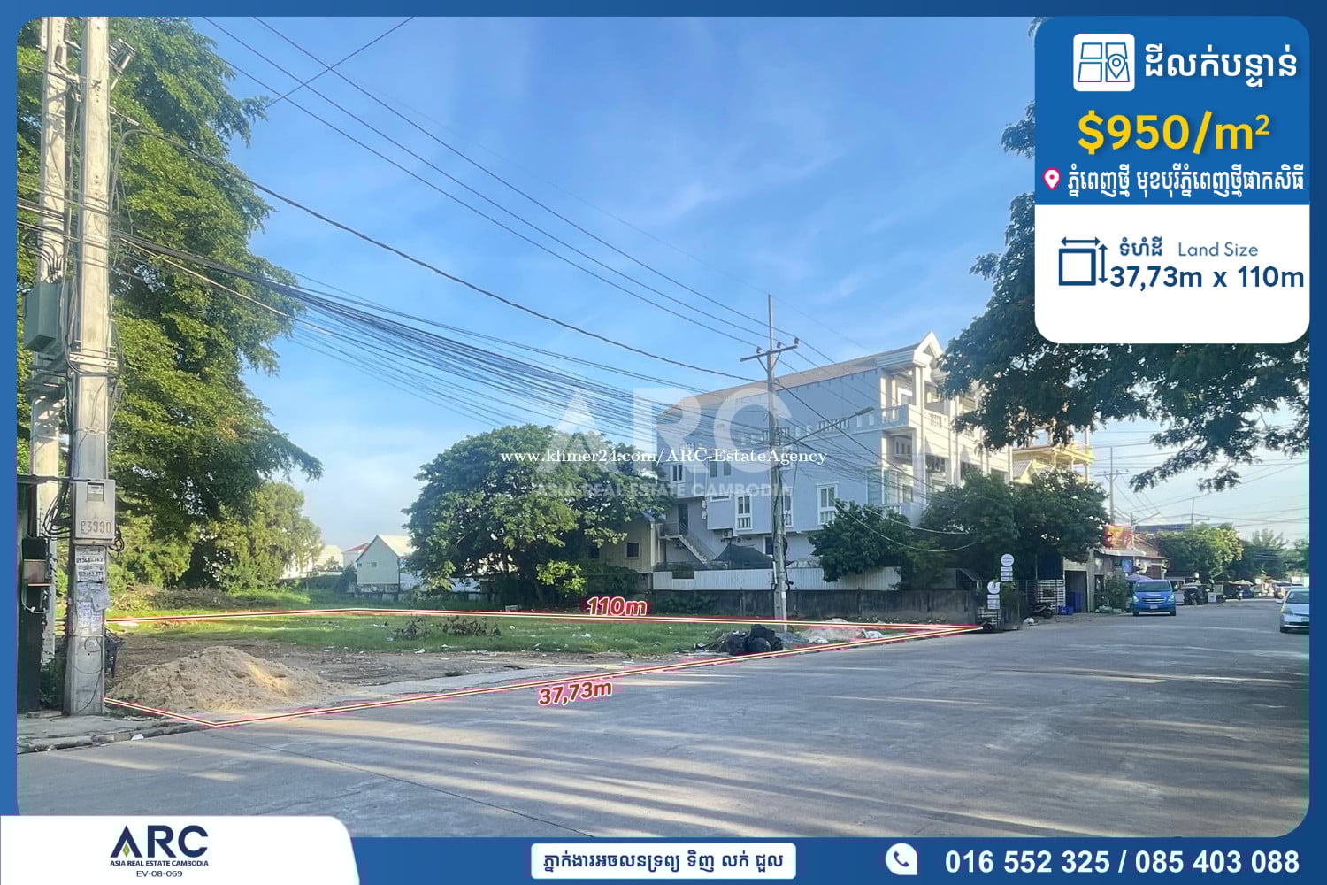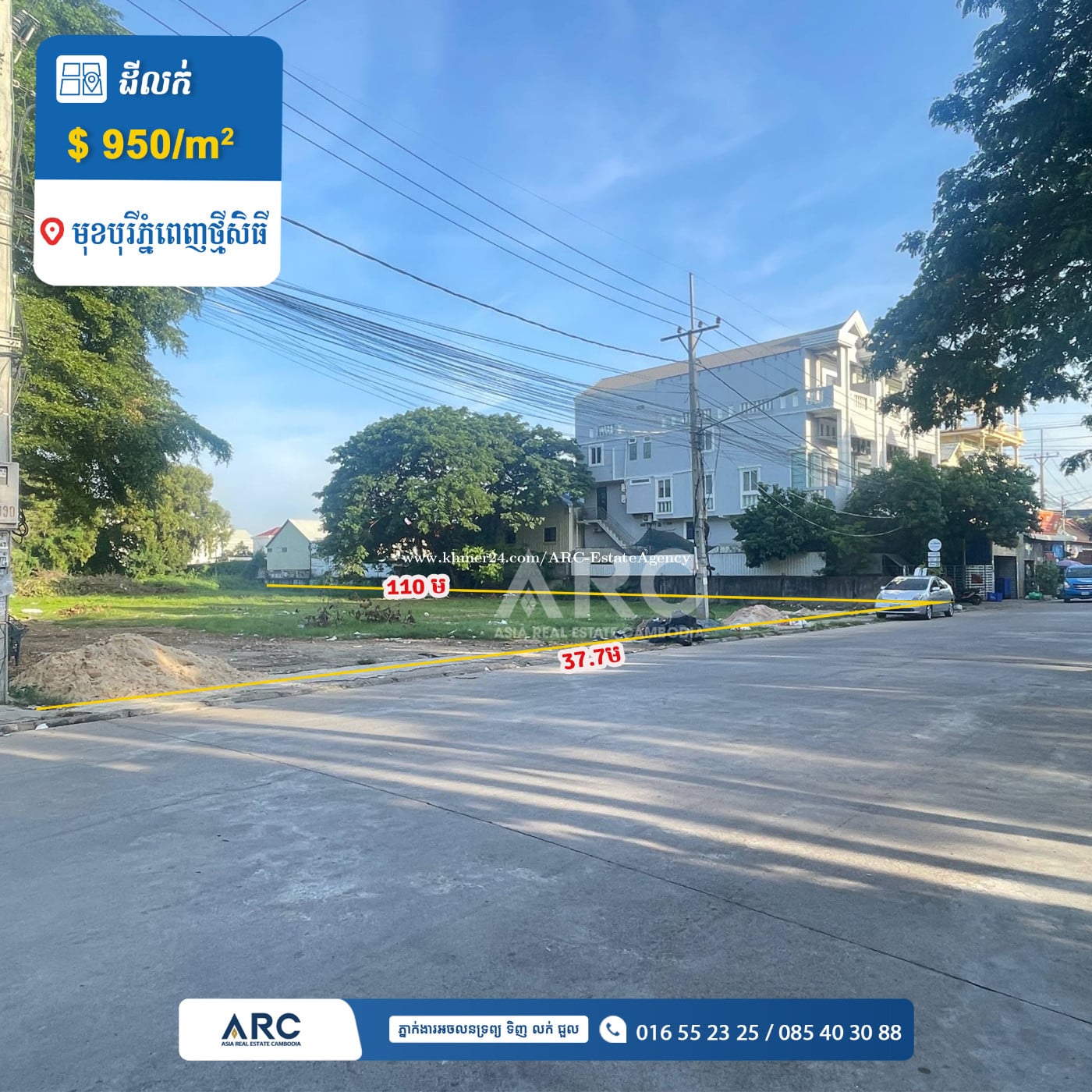 ដីលក់នៅភ្នំពេញថ្មី (មុខបុរីភ្នំពេញថ្មីផាកសិធី) #landforsale - តម្លៃលក់/ Price: USD 950/m2 ចរចា - ផ្ទេរកម្មសិទ្ធិប្លង់រឹង - ទំហំដី: 37,73m x 110m - ដីនៅលើផ្លូវរដ្ឋ១៦ម រាបស្មើទល់មុខបុរី ជាតំបន់ប្រជុំជន ⛳️ ទីតាំងសង្កាត់ភ្នំពេញថ្មី ខណ្ឌសែនសុខ។ - ពត៌មានបន្ថែមសូមទំនាក់ទំនង៖ ☎️ 016552xxxClick To Call / 085403xxxClick To Call 👉Chat: https://t.me/SynaSuy 👉Channel (Suy Syna): https://t.me/SuySyna 👉Channel ARC: https://t.me/AsiaRealEstateCambodia 👉 Website: www.arc.com.kh 👉 អាជ្ញាប័ណ្ណលេខ៖ EV-08-069