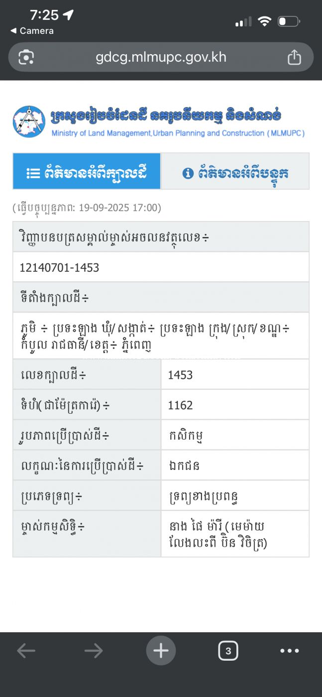 ដីលក់នៅភ្នំពេញ 1ម៉ែត្រការ៉េ 97$ តែប៉ុណ្ណោះ ទីតាំងនៅកំបូល ឃុំ ប្រទះឡាង ភូមិ ប្រទះឡាង