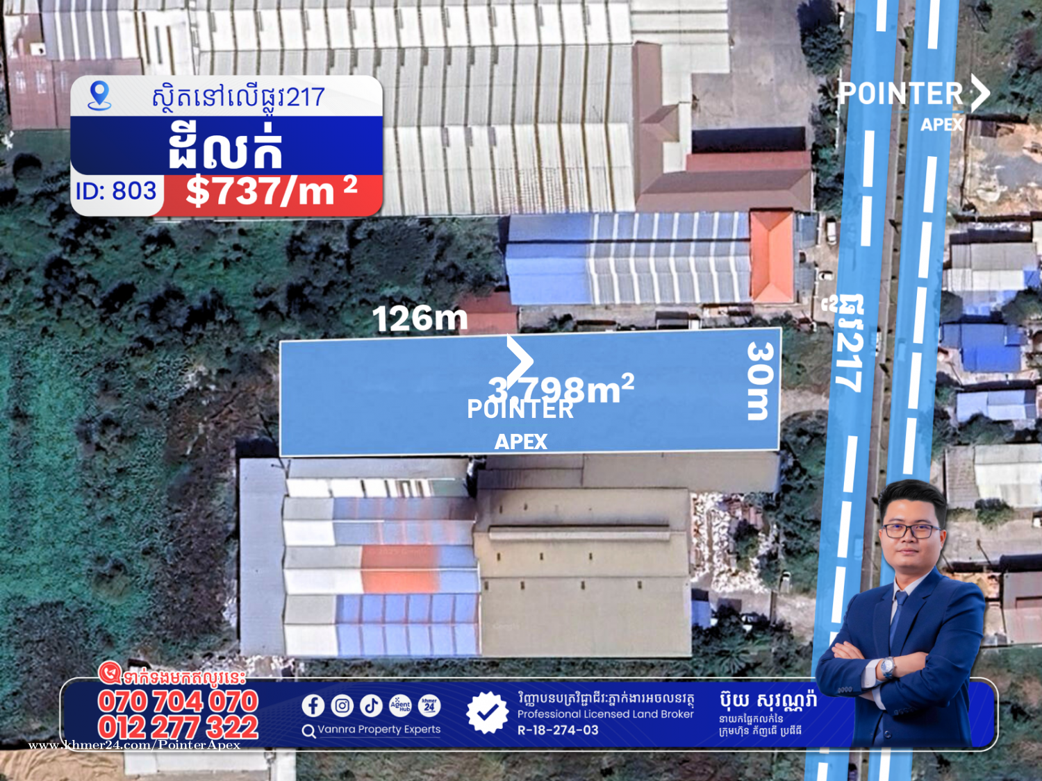 ដីលក់នៅលើផ្លូវ217 ជិតផ្សារព្រែកជ្រៃ សម្រាប់លក់:$2,800,000 ទំហំដី:30m x 126m (3,798m2) 🔐លេខកូដអចលនវត្ថុ៖ 803 📌 ស្ថិតនៅលើផ្លូវ217 សង្កាត់ស្ពានថ្ម ខណ្ឌដង្កោ ភ្នំពេញ ——————————— ទាក់ទងមកឥលូវនេះ៖ Call: 070704xxxClick To Call / 012277xxxClick To Call Telegram: https://t.me/vannraaa 微信号: vannra-experts - Channel: https://t.me/vannrapropertyexperts - Tiktok: https://www.tiktok.com/@vannra_property_experts - Facebook: https://www.facebook.com/vannra.phnompenh.property/