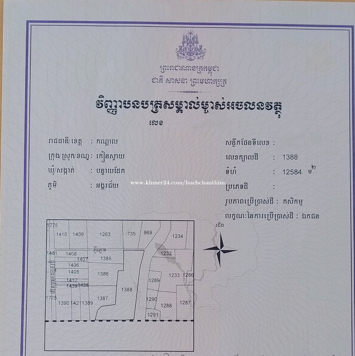 Location: ភូមិអង្គរជ័យ ឃុំបន្ទាយដែក ស្រុកកៀនស្វាយ ខេត្ត កណ្តាល Banteay Daek, Kien Svay, Kandal