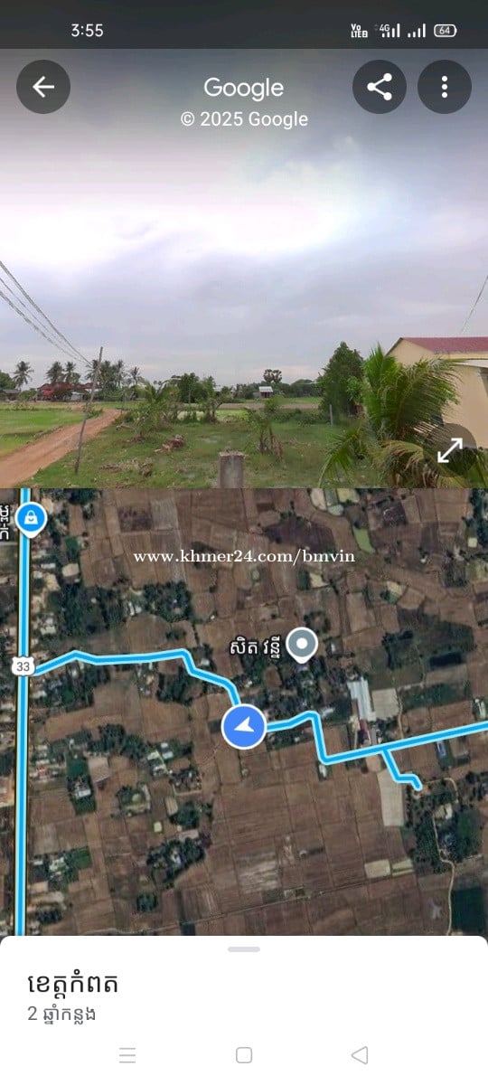 Kampot , ដីស្អាតក្បាលដីជាប់នឹងផ្លូវបេតុងឯកសារប្លង់រឹង(តម្លៃ20000$ចរចា)