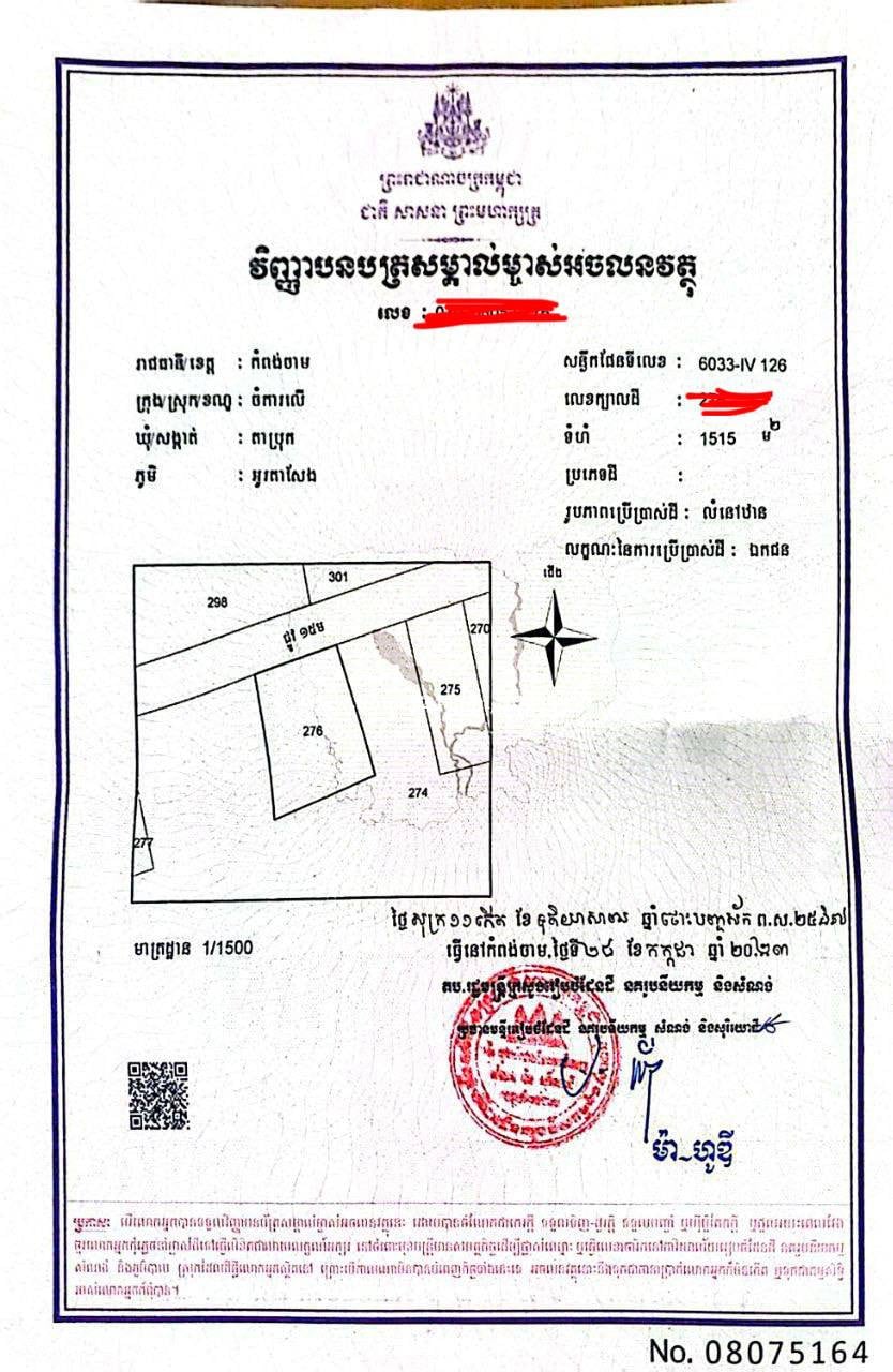 1 ម៉ែត្រការ៉េ 7$ ដីទំហំ ១ហិចតា ៦០អា