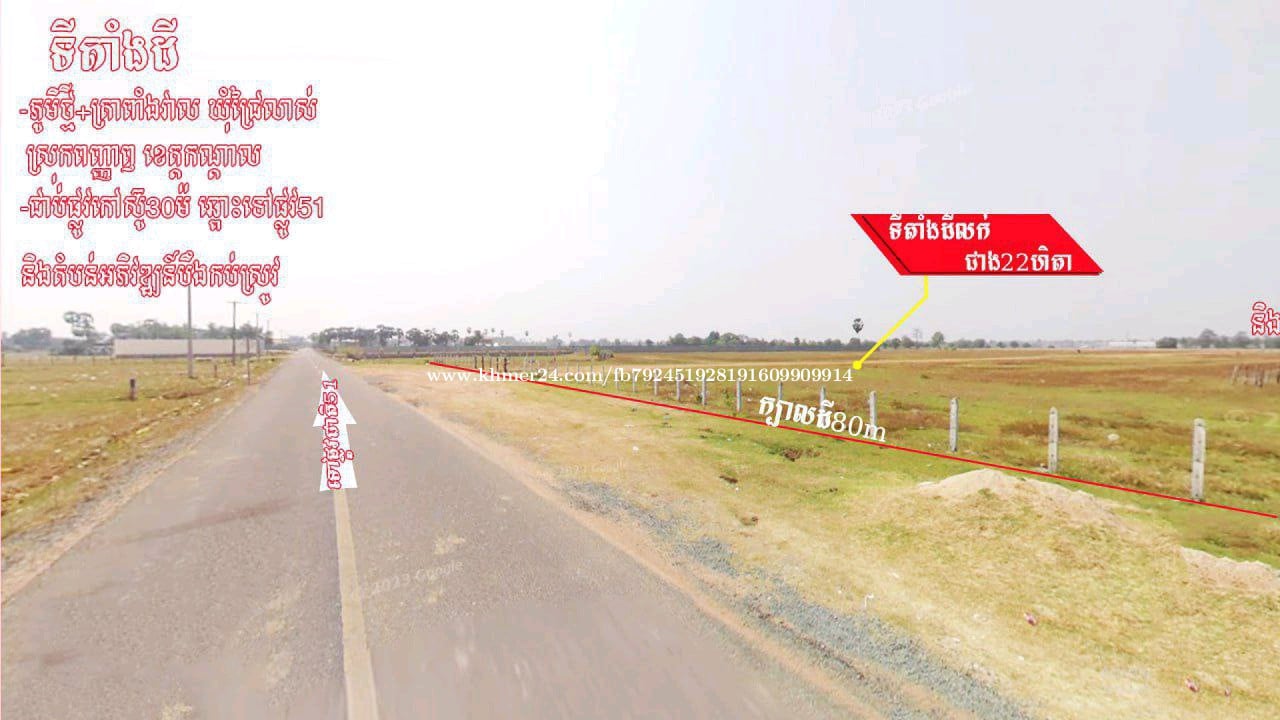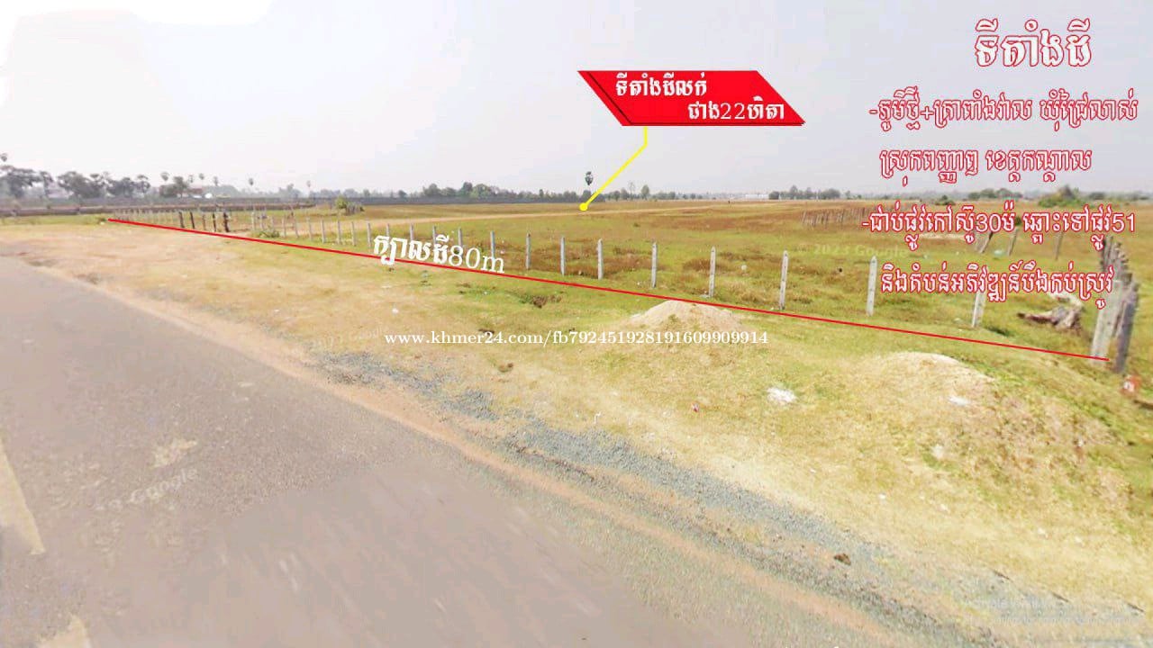 •ដីខ្នាតរោងចក្រសហគ្រាសជាប់ផ្លូវកៅស៊ូ៣០ម៉ែត្រលក់បន្ទាន់តម្លៃក្រោមទីផ្សារ ++++++++++++++++++ •មានពីរទីតាំងជិតគ្នា ១. ទំហំជាង 22ហិតា(តម្លៃ 35$/m2ចរចា) ២.ទំហំជាង 56ហិតា តម្លៃ 40$/m2 ចរចា(មានរបង1ជុំស្រាប់) ++++++++++++++++++ 📍ទីតាំង : ភូមិ:ថ្មី+ត្រពាំងវាល ឃុំជ្រៃលាស់ ស្រុកពញ្ញាឮ ខេត្តកណ្តាល, 4kmពីផ្លូវជាតិលេខ51 ++++++++++++++++++ ☎️.012246xxxClick To CallTelegram .010246xxxClick To Call +ព័ត៌មានលក់/ជួល:https://t.me/phanithrealestate
