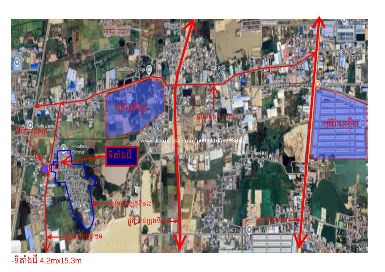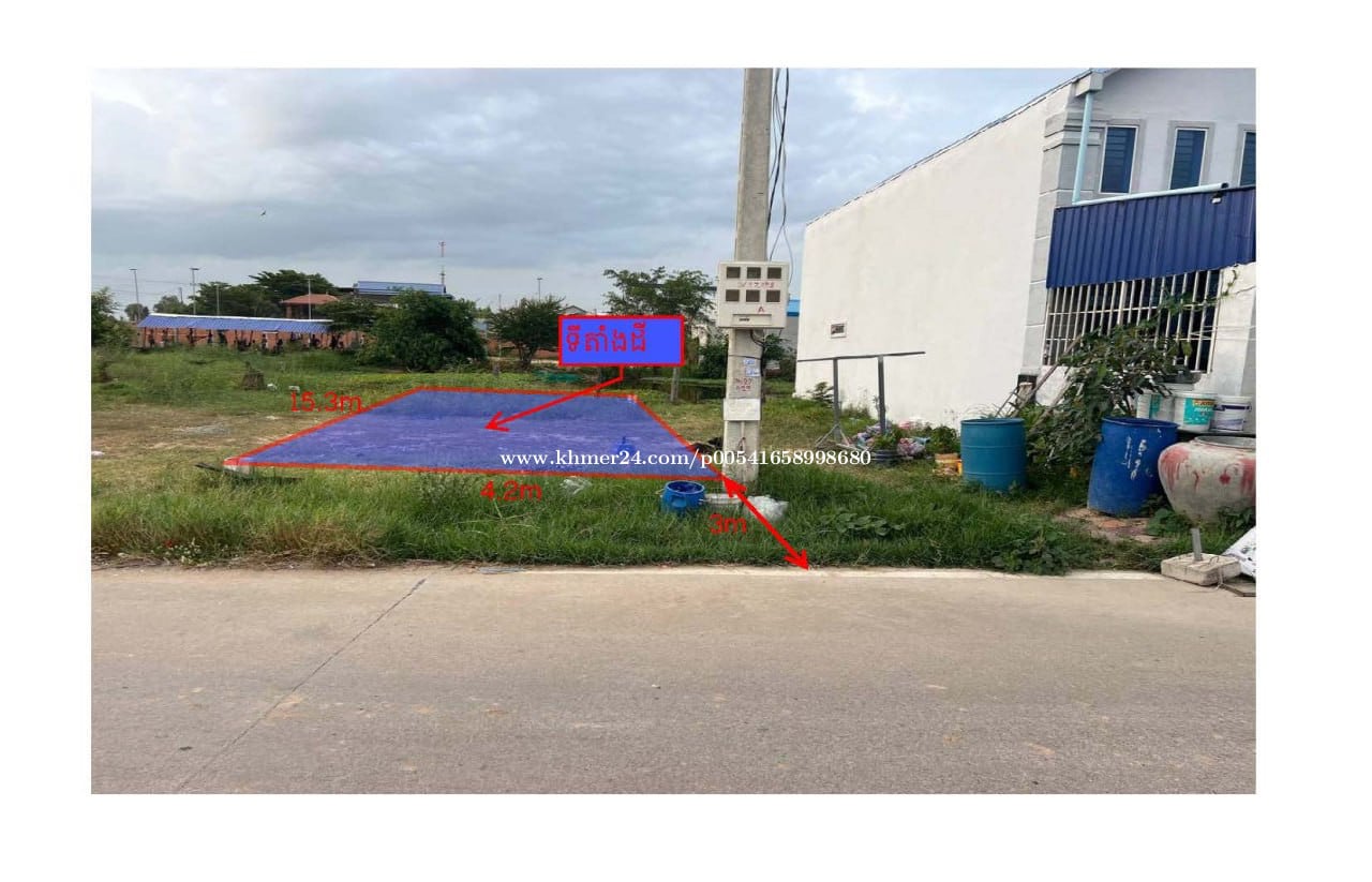💢 ដីលក់បន្ទាន់បញ្ចុះតំលៃមិនធ្លាប់មានតំលៃក្រោមទីផ្សារ 💢 -ទំហំ 4.2mx15.3m = 18XXX$ រត់ប្លង់ជូន ម្ចាស់ប្រញាប់ 💢 ជាប់ផ្លូវក្រវ៉ាត់ក្រុងទី3 💢 ដីមានសក្តានុពុល ទិញទុកចំនេញ សង់ផ្ទះជួល សង់ផ្ទះ ដីក្នុងភូមិ ក្បែររោងចក្រ ក្បែរផ្សារ សាលារៀន មន្ទីរពេទ្យ មានទឹកភ្លើង 💢 ជិះពីស្ពានអាកាសចោមចៅ 4km (3នាទី) 💢 ទីតាំង មានអ្នករស់នៅជុំវិញស្រាប់ប្រជុំជន 💢 ទីតាំងក្រោយវត្តជន្លង់ម្លូរ សង្កាត់ ភ្លើងឆេះរទេះ 💢 ផ្លូវមុខ10mបេតុង ផ្លូវចូលបេតុងរដ្ឋ15m 📍 Map ទីតាំងដី 4.2m x 15.3m 👉 https://maps.app.goo.gl/t6PxVspARTK5dKqG8?g_st=it 11°29'48.0"N 104°47'39.8"E (https://maps.app.goo.gl/t6PxVspARTK5dKqG8?g_st=it)