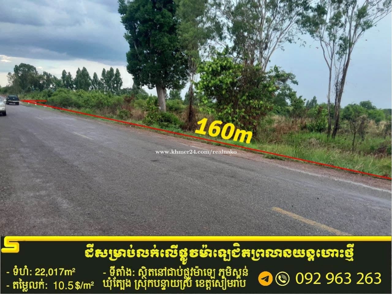 ដី លក់បន្ទាន់តម្លៃក្រោមទីផ្សារ ជាប់ផ្លូវម៉ាឡេ ជិតភ្នំគូលែន ជិតតំបន់អភិវឍ្ឍន៍រុនតាឯក រមណីដ្ឋានត្រាវកុដ្ឋ និងជិតព្រលានយន្តហោះថ្មី ... -ទីតាំងទី ១ ៖ ដីជាប់ផ្លូវម៉ាឡេ ជាដីកែង ✔️ តម្លៃ៖ $ 10.5 / m2 ✔️ ទំហំ ៖ ក្បាលដី160m x 138m : 22,017m2 ✔️ កាត់ប្លង់ជូន ✔️ ល្អសម្រាប់ធ្វើការ៉ាស់សំាង រមនីដ្ឋាន..... ⛳️ ទីតាំង ៖ ផ្លូវម៉ាឡេ ភូមិស្គន់ ឃុំត្បែង ស្រុកបន្ទាយស្រី ខេត្តសៀមរាប ។ Map: https://maps.app.goo.gl/QR92YiTvBSFF16h38 ---------------------------------------------------------------------- -ទីតាំងទី 2 ៖ ដីជាប់ផ្លូវម៉ាឡេ ✔️ តម្លៃ៖ $ 8.5 / m2 ✔️ ទំហំ ៖ ក្បាលដី90m x 520m : 47105m2 ✔️ កាត់ប្លង់ជូន ✔️ ល្អសម្រាប់ធ្វើការ៉ាស់សំាង រមនីដ្ឋាន..... ⛳️ ទីតាំង ៖ ផ្លូវម៉ាឡេ ភូមិស្គន់ ឃុំត្បែង ស្រុកបន្ទាយស្រី ខេត្តសៀមរាប ។ Map: https://maps.app.goo.gl/CjV95ZC7BK6gykCQ8 --------------------------------------------------------------------- ☎️ លេខទូរស័ព្ទម្ចាស់ផ្ទាល់៖ 092963xxxClick To Call (telegram )