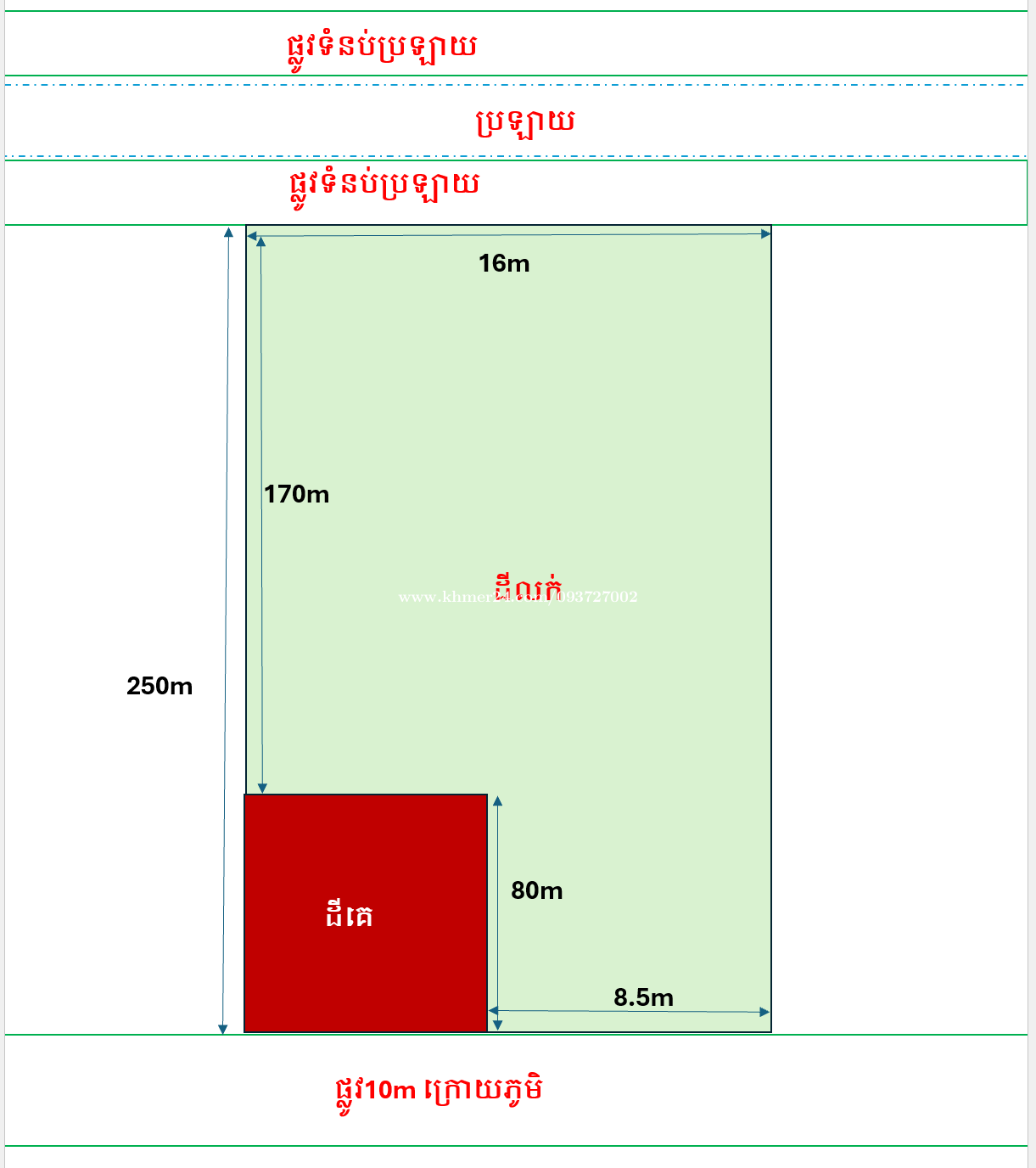 ដីចម្ការស្វាយលក់បន្ទាន់ ចរចារបាន នៅខាងក្រោយភូមិ ជាប់ផ្លូវទំហំ10m (ផ្លូវក្រោយភូមិ) និងចុងដីជាប់ផ្លូវប្រឡាយ10m។ នៅក្បែរដីមានផ្ទះប្រជាជនកំពុងរស់នៅស្រាប់ និងបន្តសាងសង់។ ដីប្លង់រឹង កាន់ចុងសន្លឹក។ សូមមើលប្លង់ទំហំដីដូចក្នុងរូបភាព។ អាចទំនាក់ទំនងតាមលេខមានភ្ជាប់តេឡេក្រាម។ ទីតាំងដី៖ https://maps.app.goo.gl/p6yZ8KWy9Vwr5RKPA