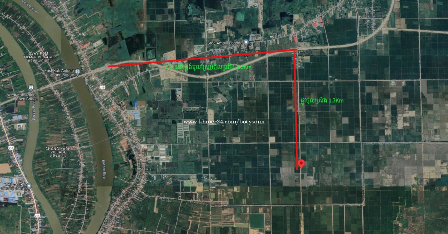 ដីលក់ តាមបណ្តោយផ្លូវក្រវ៉ាតក្រុងទី៣ កោះអន្លង់ចិនទៅផ្លូវជាតិលេខ១ - ទំហំ 22.5ម៉ែត្រ x 97ម៉ែត្រ $140,000 - ទំហំ 45ម៉ែត្រ x 97ម៉ែត្រ $280,000 - ដីមានប្លង់រឹង ទីតាំងដីស្ថិតនៅតាមបណ្ដោយខ្សែក្រវ៉ាត់ក្រុងទី៣ ចុះពីស្ពានកោះអន្លង់ចិន - ដីមានសក្តានុពល មានផ្លូវ និងបង្គោលភ្លើងទៅដល់ - អាចបើកជារោងចក្រ ឃ្លាំង និងអាជីវកម្មផ្សេងៗ ***តម្លៃអាចចរចាបាន ទីតាំងដី https://maps.app.goo.gl/ztTmS6CUEmpbZtQp7