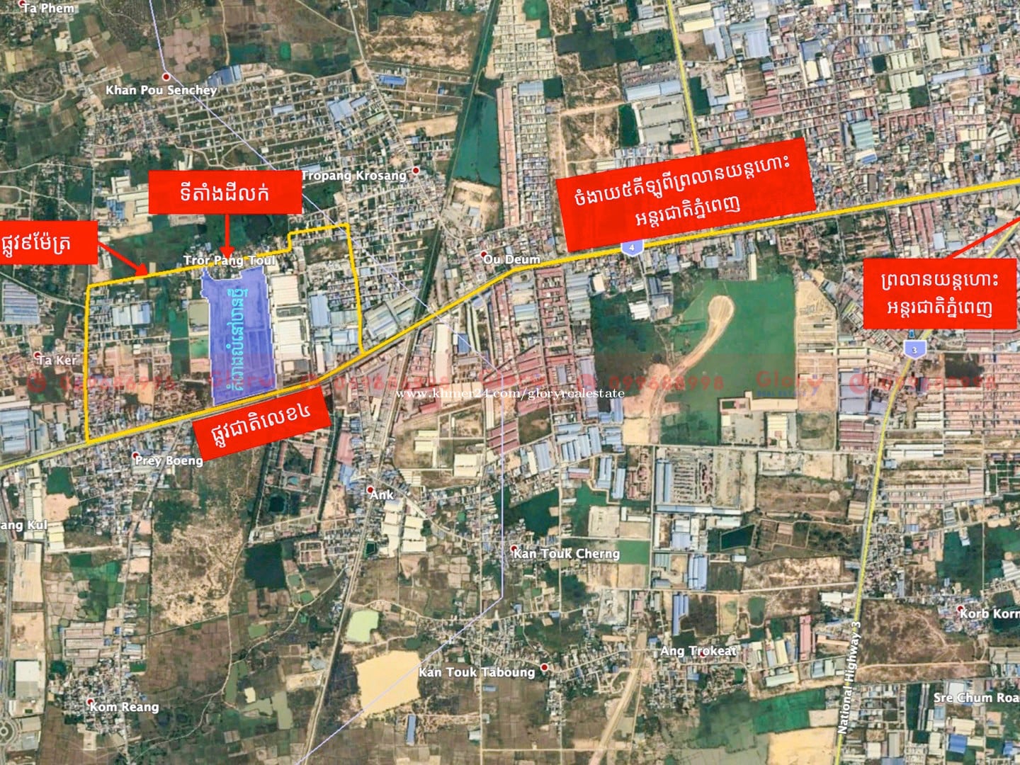 - ទំហំដីសរុប ១២៤២ ម៉ែត្រការ៉េ | Subject Land Size = 1242 Sq.m - ក្បាលដីជាប់ផ្លូវប្រវែង ៣៤ ម៉ែត្រ | Frontage Length = 34 meters - ទ្រង់ទ្រាយដី រាងជាអក្សរ L | Land Shape = L Shape - ប្លង់រឹង L-Map ស្របច្បាប់ ១០០% | Freehold/L-Map - ប្រភេទផ្លូវបេតុងទទឹង ៩ ម៉ែត្រ | 9 meters wide concrete road 💲 តម្លៃលក់ ១៩៥ ដុល្លាសហរដ្ឋអាមេរិក ក្នុងមួយម៉ែត្រការ៉េ 💲 Selling Price USD 195 Per Square Meters 🌎 ទីតាំង៖ សង្កាត់កំបូល https://goo.gl/maps/xZ4nVoTHZ4FMvKGm9 👉 សម្រាប់ព័ត៌មានលម្អិតបន្ថែម សូមទំនាក់ទំនង ៖ 📲 លេខទូរស័ព្ទ: +85569686xxxClick To Call | +85599688xxxClick To Call 💬 Telegram: https://t.me/glorycam 💬 WhatsApp: https://wa.me/+85569686xxxClick To Call 💬 WeChat: gloryrealestate 📧 អ៊ីម៉ែល: con****@glorycambodia.comClick To Sent Email
