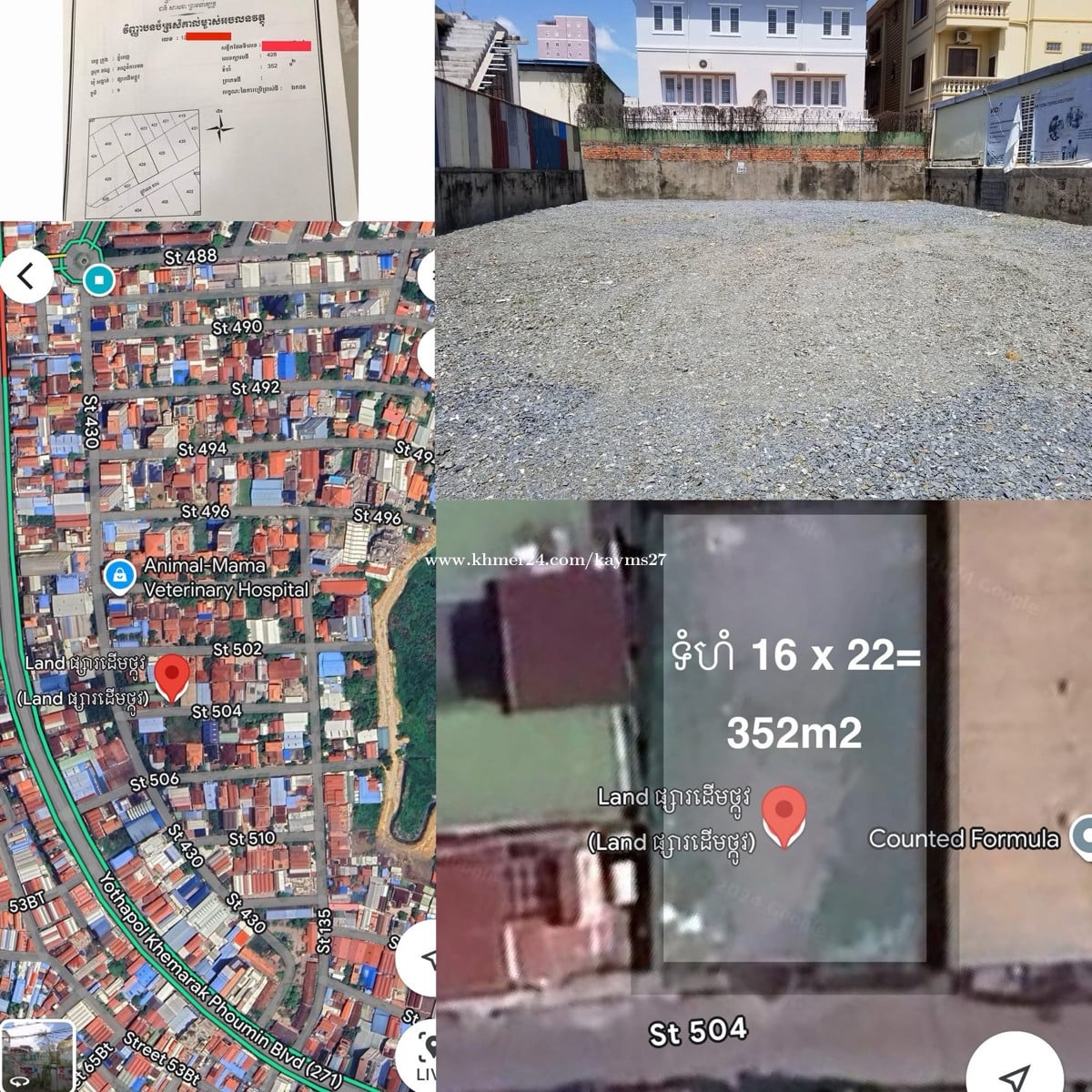 ដីលក់បន្ទាន់ ផ្សារដេីមថ្កូវ ផ្លូវ504 - តំលៃលក់ $750,000 ចរចារបាន - ដីមានចំនូលស្រាប់ពីការជួល - ទីតាំងជិតផ្លូវធំ271 និងចំងាយ200mពីរង្វង់មូលផ្សារដេីមថ្កូវ - ដីទំហំ16m x 22m= 352m2 L-map ដីមានរាងស្មេីល្អ អាចសង់ជាឃ្លាំង ផ្ទះជួល សណ្នាគារ Condo... - ទីតាំងល្អក្បែរទីប្រជុំជន 📲098222xxxClick To Call Telegram https://t.me/kaynea27