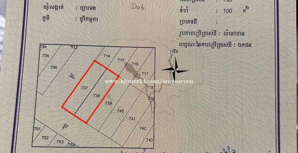 Location: ដីស្ថិតនៅ ភូមិបុរីកម្មករ សង្កាត់ច្បារមន ក្រុងច្បារមន ខេត្តកំពង់ស្ពឺ Chbar Mon, Krong Chbar Mon, Kampong Speu