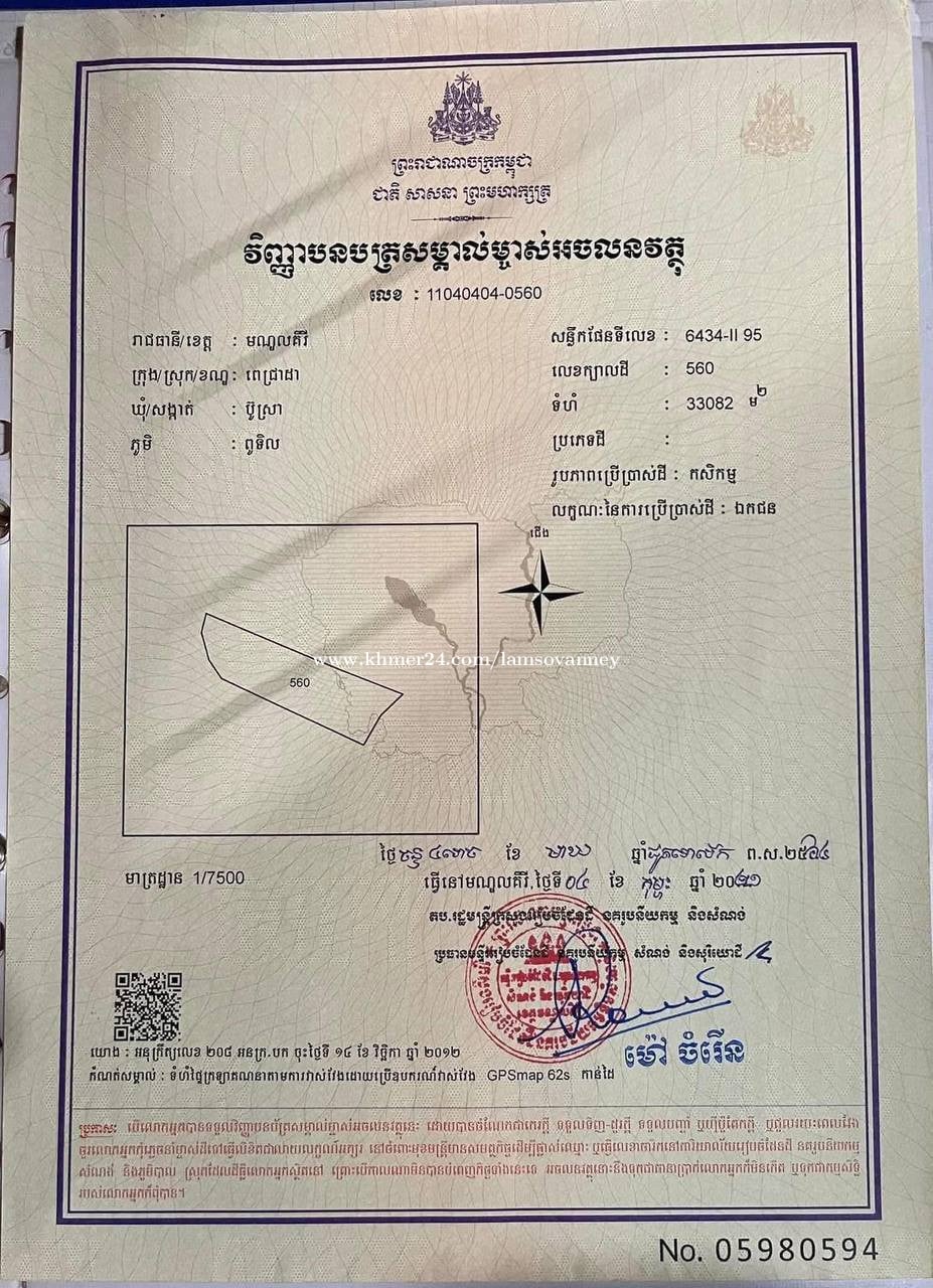 ដីលក់បន្ទាន់ ១ហិកតា =8,000$ មាន ទំហំ 3.3ha ម្ចាស់ផ្ទាល់ ប្លង់រឹង នៅប៊ូស្រា 0978628xxxClick To Call ប្លង់នៅផ្ទះស្រាប់ មើលពេលណាក៏បាន។ ផ្លូវទើបធ្វើរួច ដល់ដី