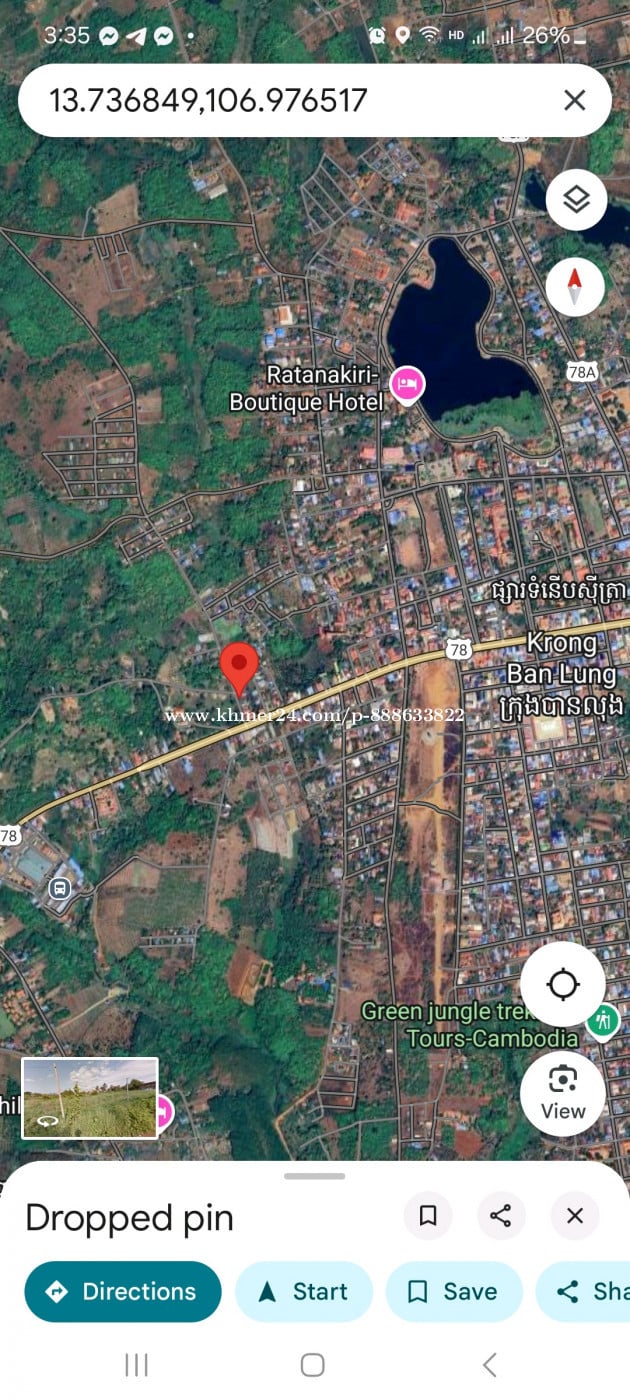 ដីលក់បន្ទាន់ ស្ថិតនៅក្នុងភូមិភ្នំស្វាយ ក្រុងបានលុង ខេត្តរតនគិរី ទំហំ 15 ទទឹង 29បណ្តោយ តម្លៃ 3500$គិតមែត្រដើរ ចាប់អារម្មណ៍ ទាក់ទងមកលេខ
