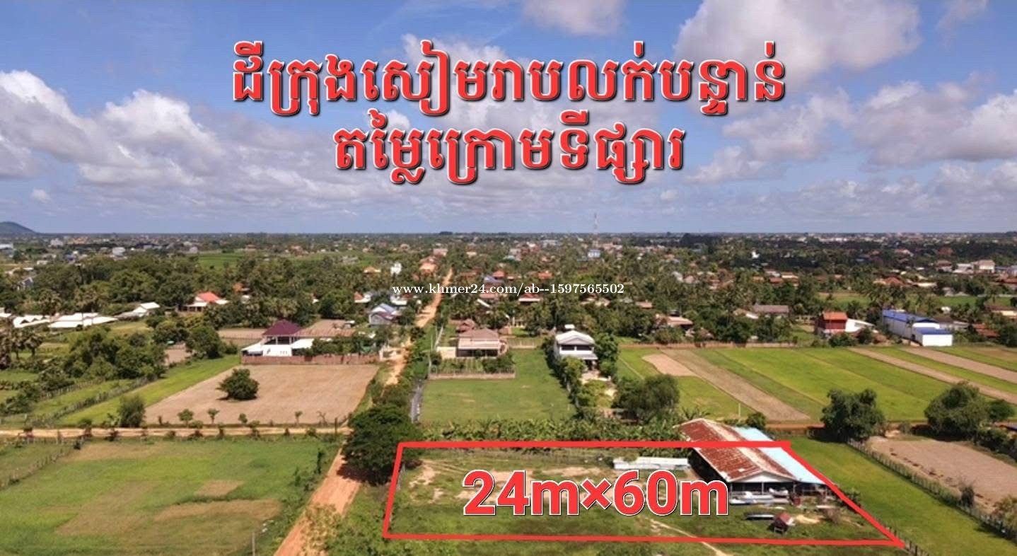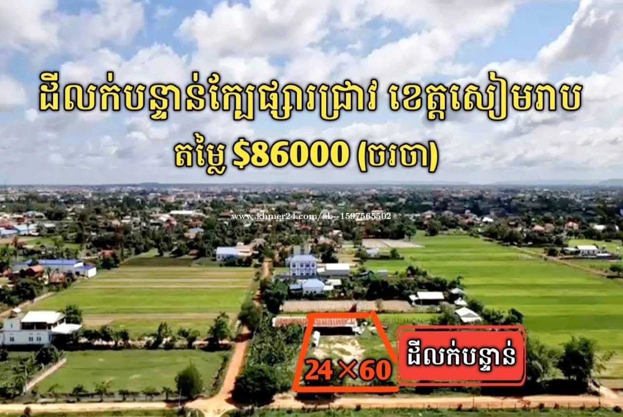 ដីទីតាំងល្អ 24m*60m ផ្លូវ15m ប្លង់រឹង ដីចាក់ខ្ពស់ស្រាប់