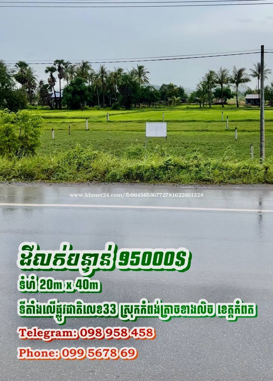 ដីលក់បន្ទាន់ជិតឆ្នេរកែប លេីផ្លូវជាតិ33 ដីទំហំ 20m x 40 (ប្លង់រឹង) តំលៃ 95000$ (ចចារ) 💌 098 958 458 📲 099 5678 69 ទីតាំង ភូមិកណ្តាលទួល ស្រុកកំពង់ត្រាច ឃុំកំពង់ត្រាចខាងលិច ខេត្តកំពត លក្ខណៈពិសេសដី នៅលេីផ្លូវជាតិលេខ៣៣ ជិតរោងចក្រពូចិន ជិះតែ7នាទីដល់ឆ្នេរកែប អាចបេីកប្រកបអាជីវកម្មបាន 📍 https://maps.app.goo.gl/duLr1zu3T75p8X4T9?g_st=ic
