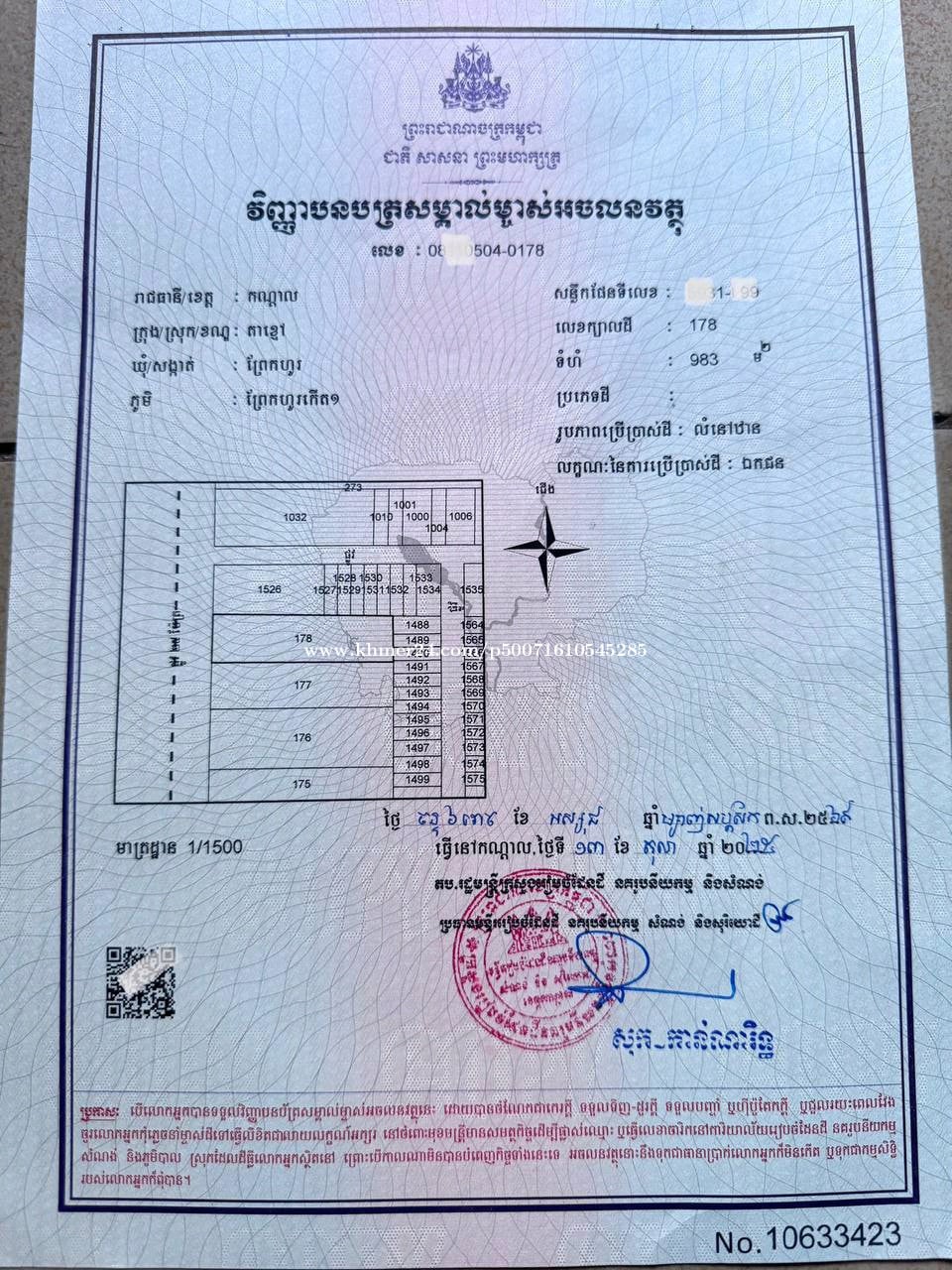 ដីលក់បន្ទាន់ ទំហំ 16m x 62m ប្លង់រឹង 983ម៉ែត្រការ៉េ ទីតាំង ស្ថិតផ្លូវ 25 ម៉ែត្រ ចាកើបេតុហើយ ទំហំ 8ម៉ែត្រ សង្កាត់ព្រែកហូរ ក្រុងតាខ្មៅ តំលៃ $22ម៉ឺន ត 077899xxxClick To Call/087775xxxClick To Call https://maps.app.goo.gl/mou45AD5fVRWC8At9?g_st=ipc
